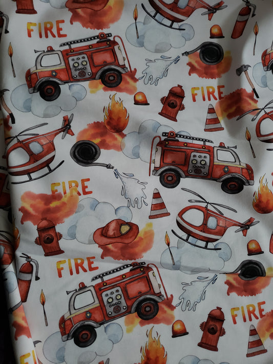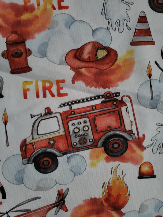 Reststück 1,28m , Organic Cotton, Jersey Stoff, weiß rot , Feuerwehr