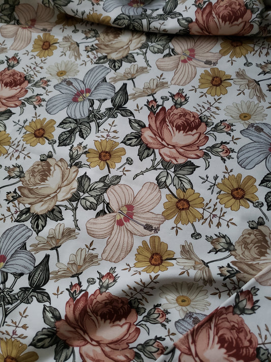 Reststück 1,30m French Terry, Sommer Sweat, Baumwolle, Stoff, Boho Vintage Flowers