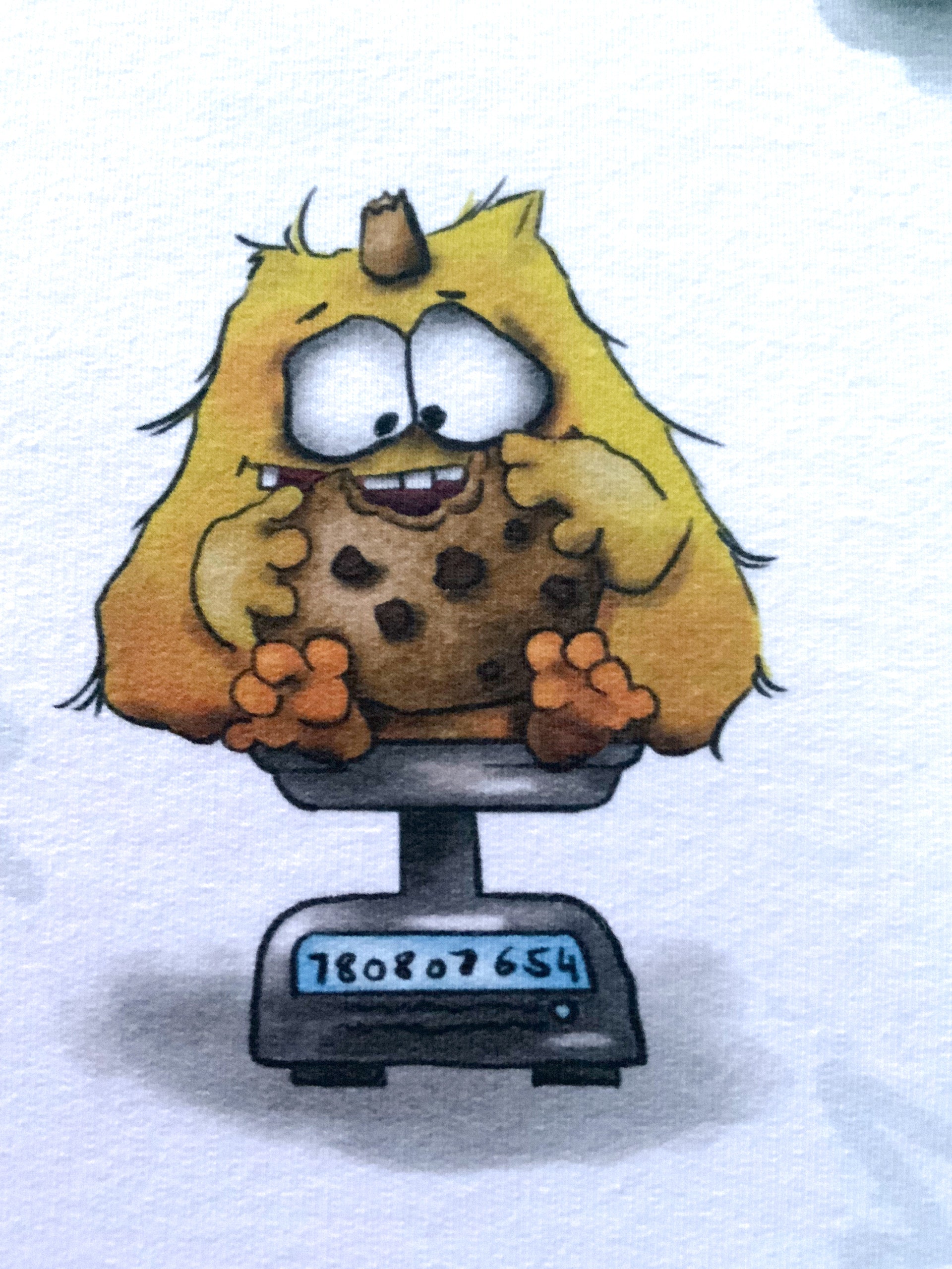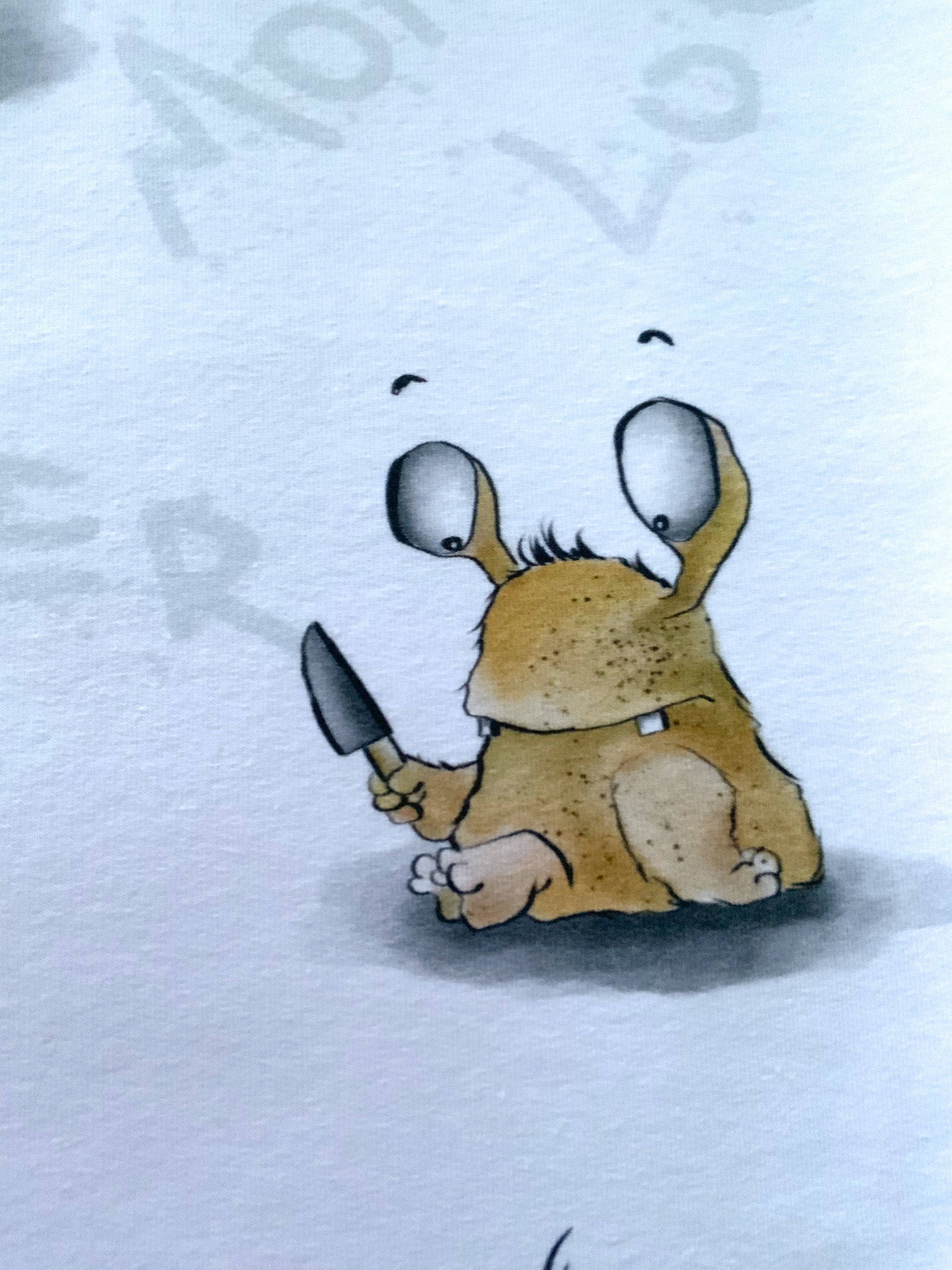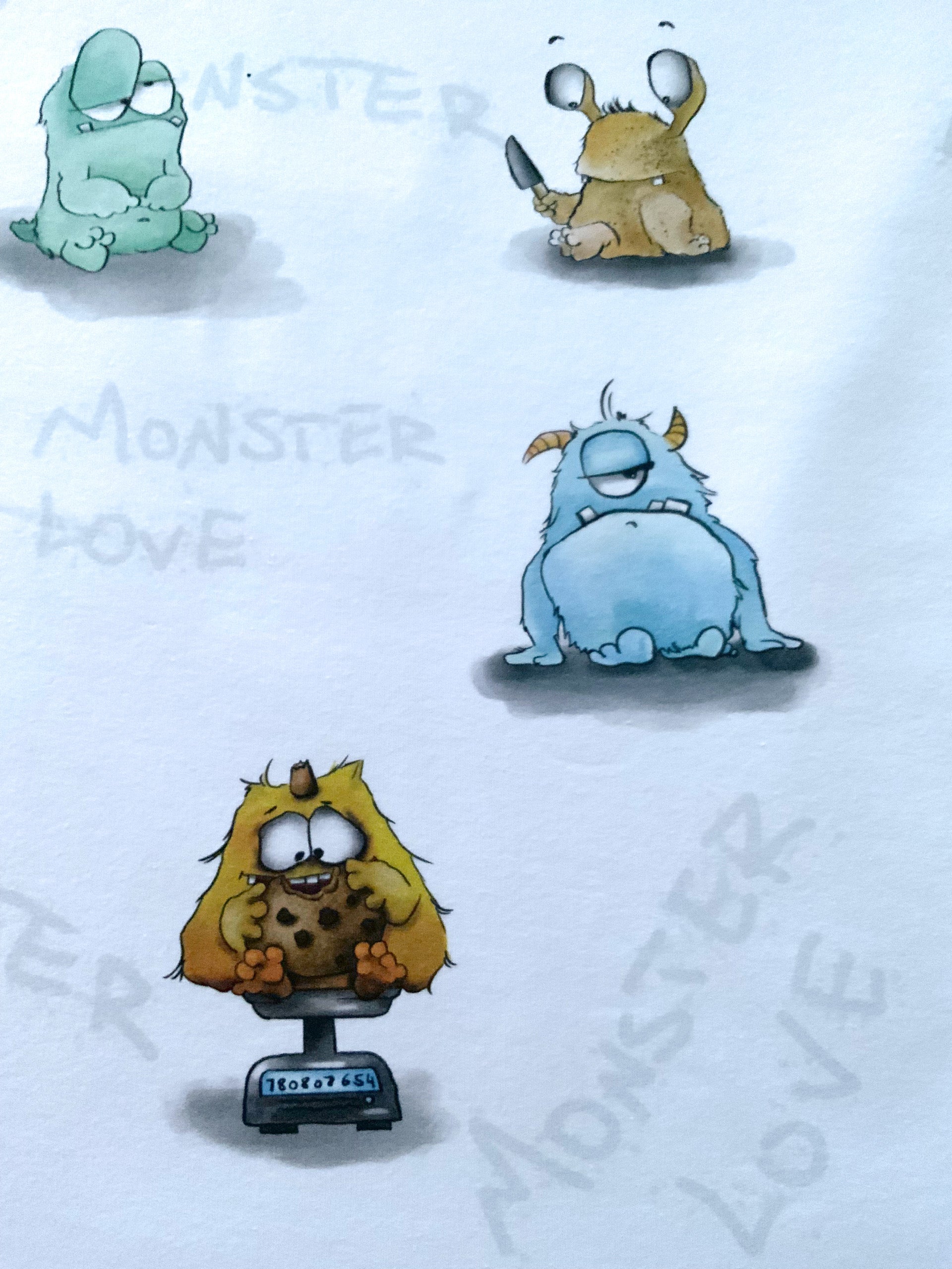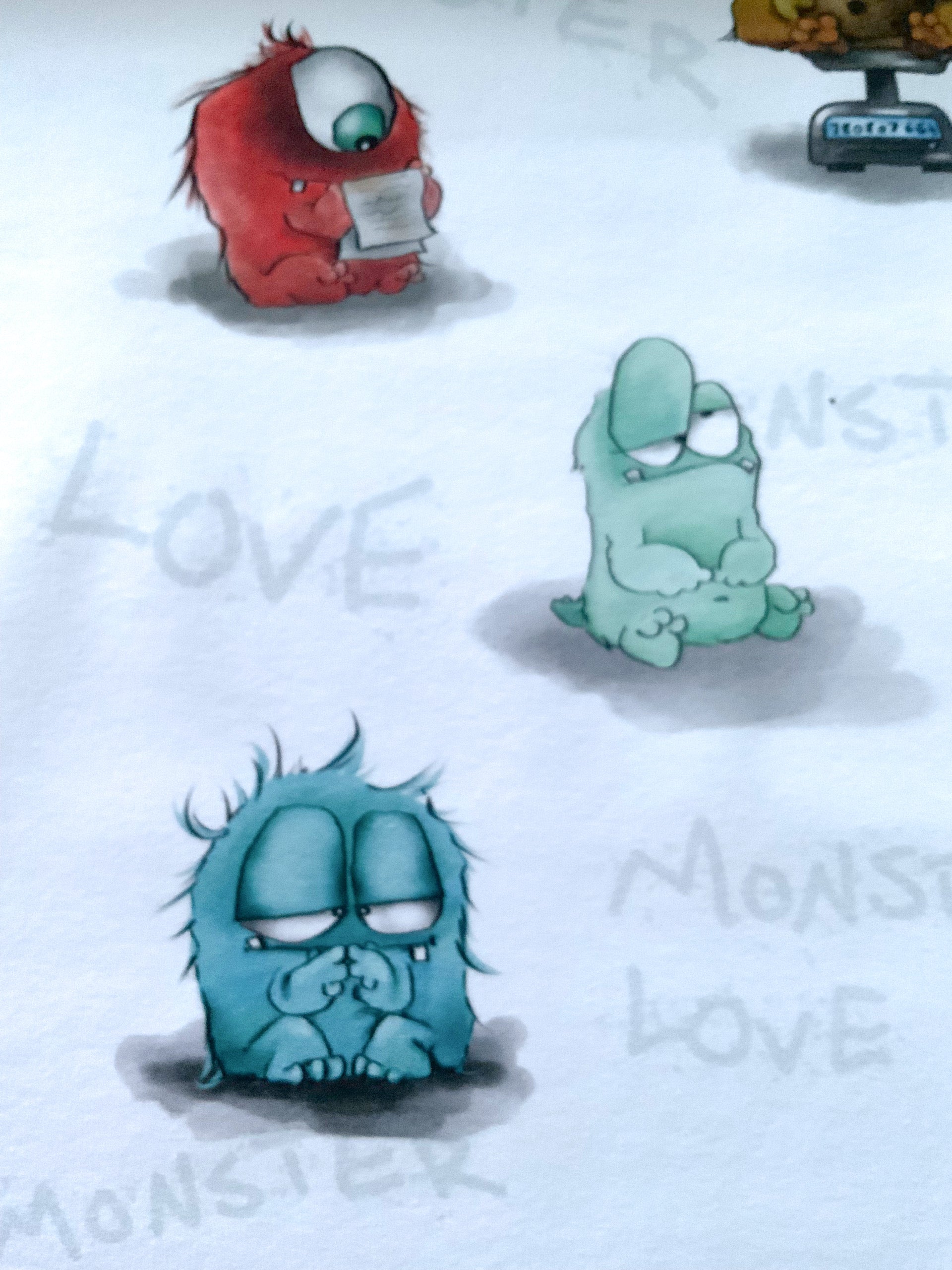 0,5m Organic French Terry, Stoff, Eigenzeichnung, Monster mit Sprüchen auf weiß Klassiker