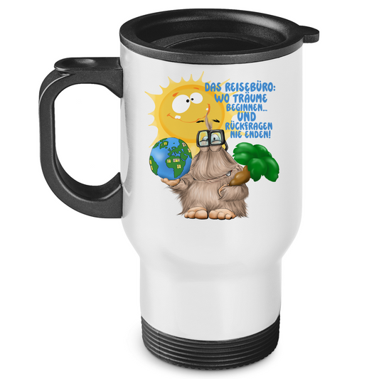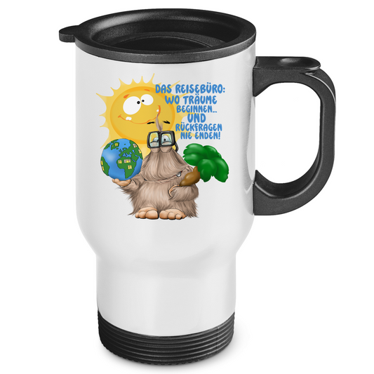 Edelstahl-Thermobecher Das Reisebüro: Wo Träume beginnen und Rückfragen nie enden!