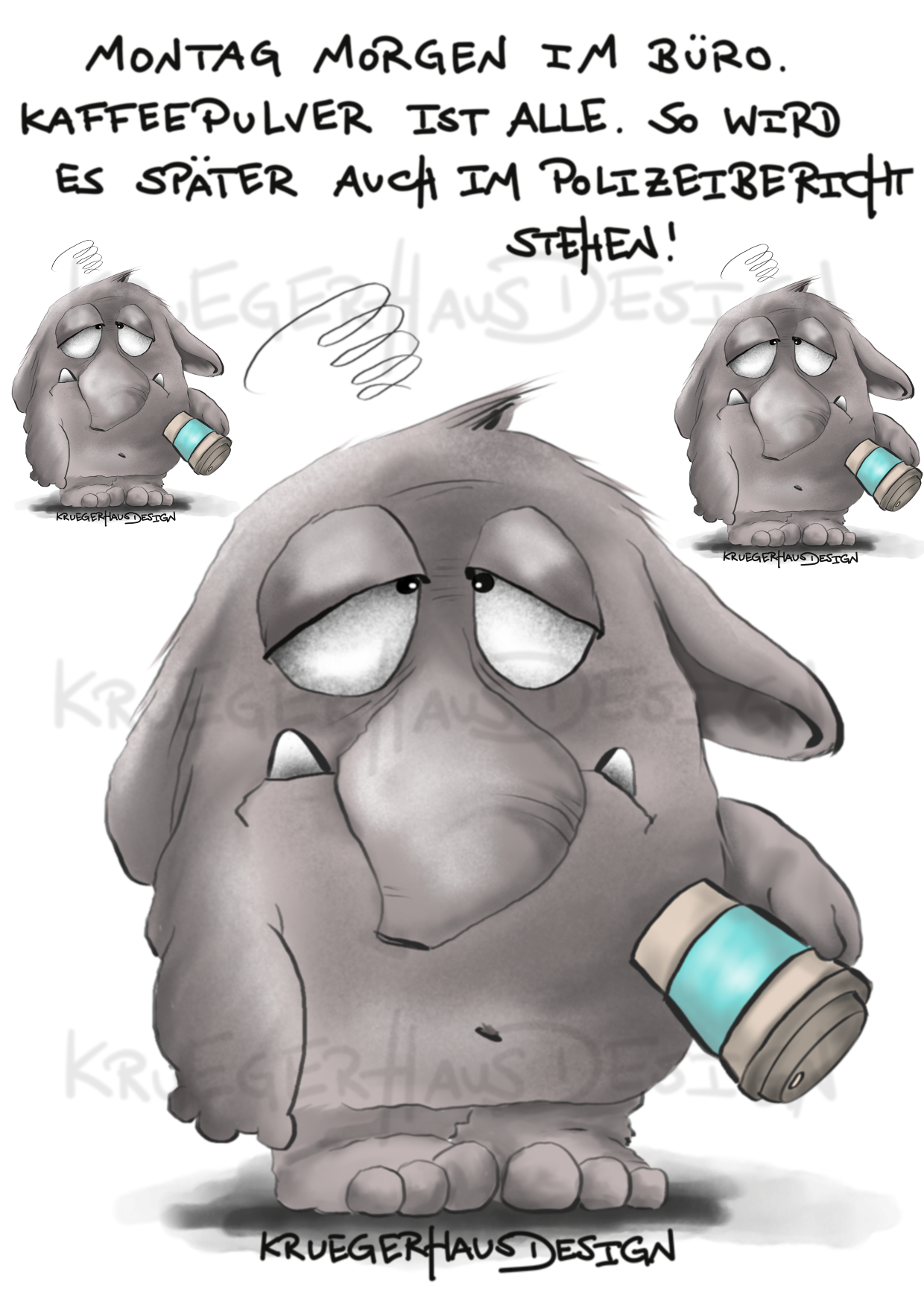 "Montag Morgen im Büro. Kaffeepulver ist alle. So wird es später auch im Polizeibericht stehen!"
