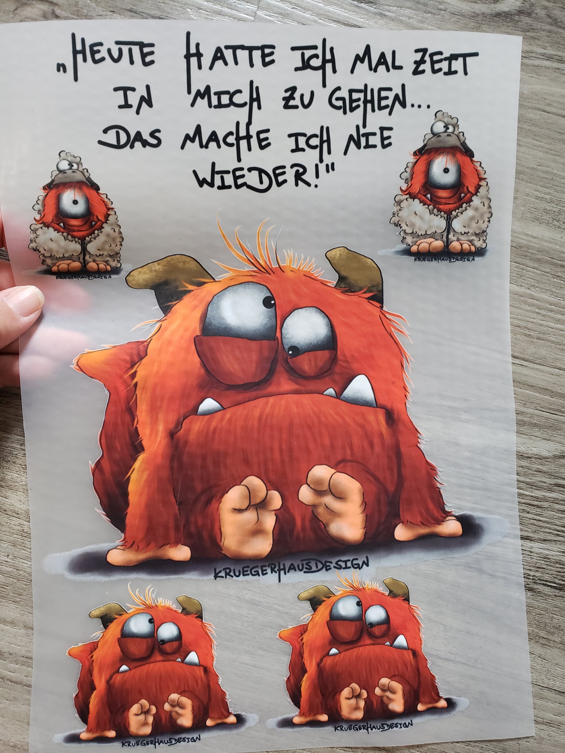 Hier bekommst du ein DIN A4 Blatt mit meinen Kruegerhausdesign Monster "Heute hatte ich mal Zeit..." Die Größe entnimmst du bitte auf dem Foto.