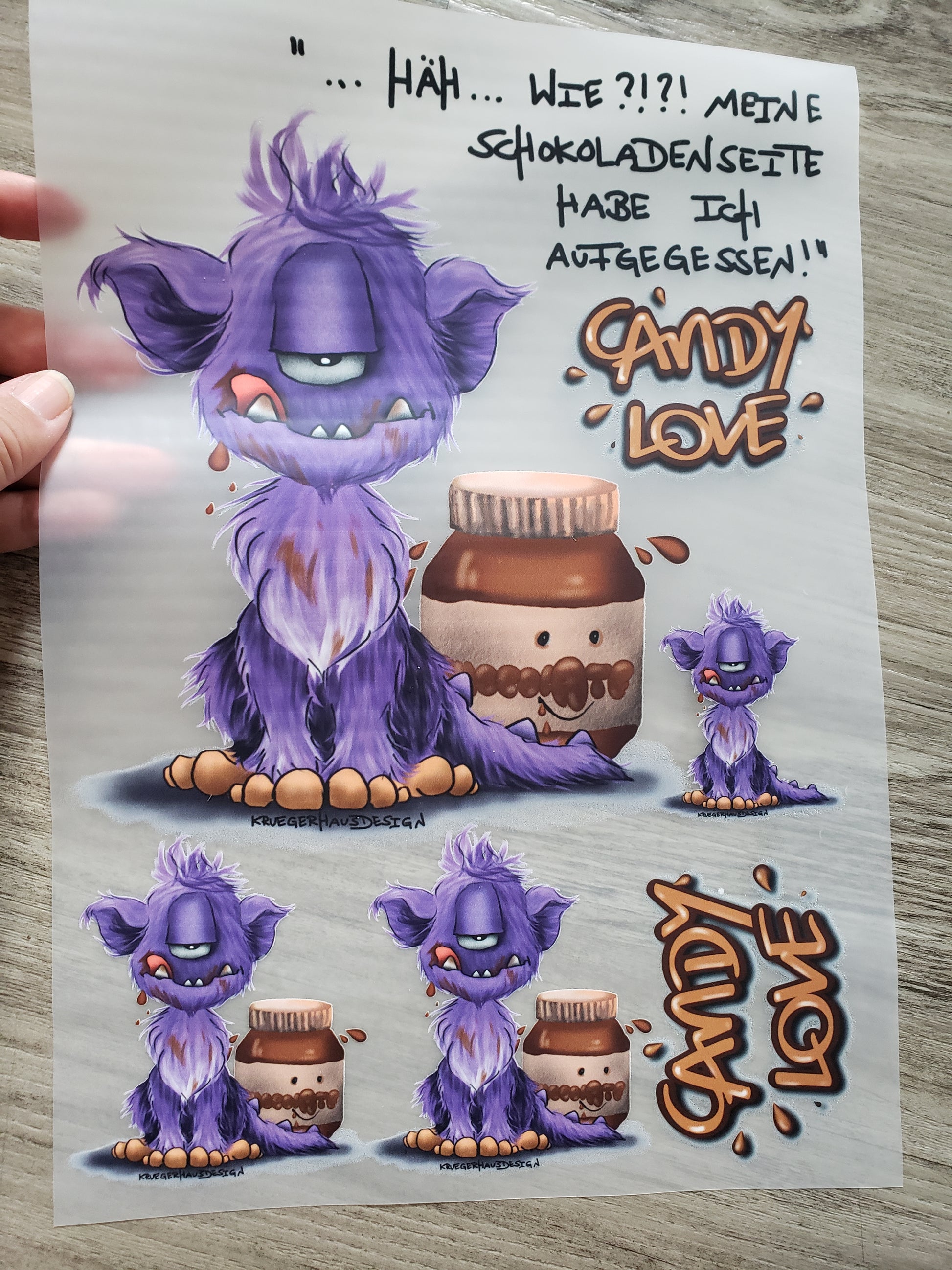 Hier bekommst du ein DIN A4 Blatt mit meinen Kruegerhausdesign Monster "Meine Schokoladenseite..." Die Größe entnimmst du bitte auf dem Foto.