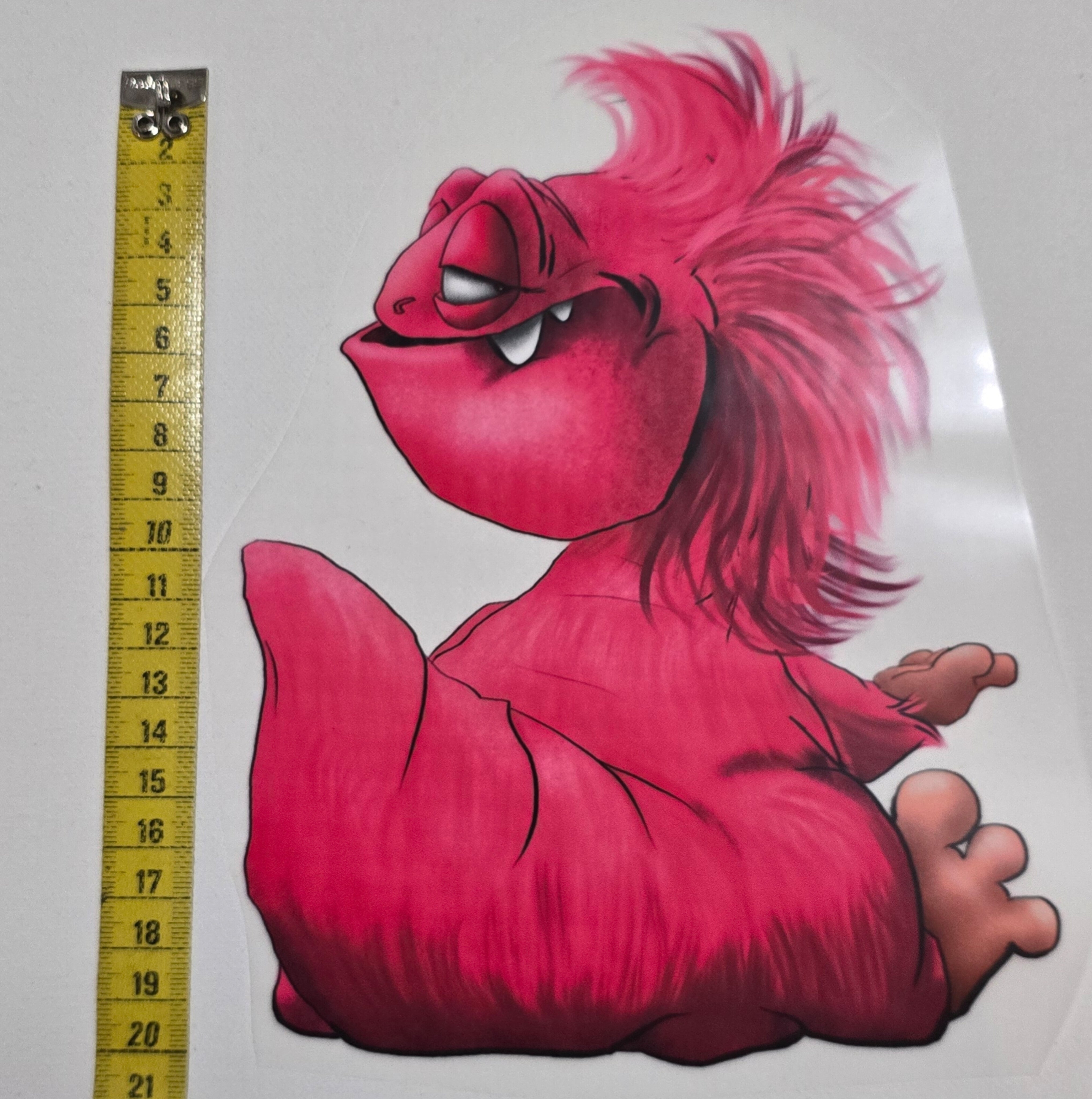 Hier bekommst du das Monster Persönlichkeit in pink Bügelbild. Größe beträgt 17cm breit x 21cm hoch.