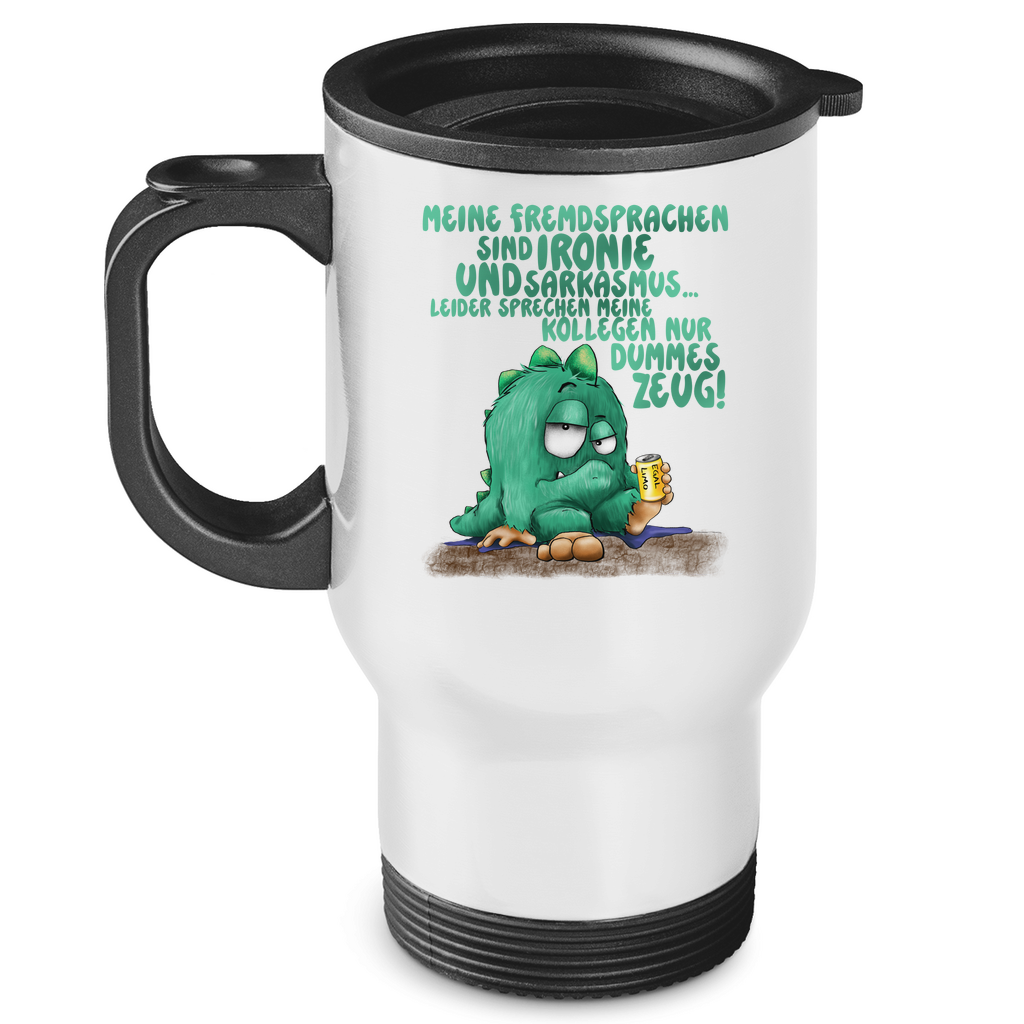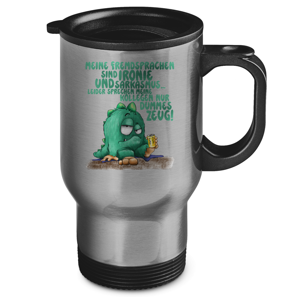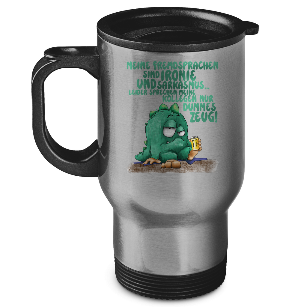Edelstahl-Thermobecher Meine Fremdsprachen sind Ironie und Sarkasmus.