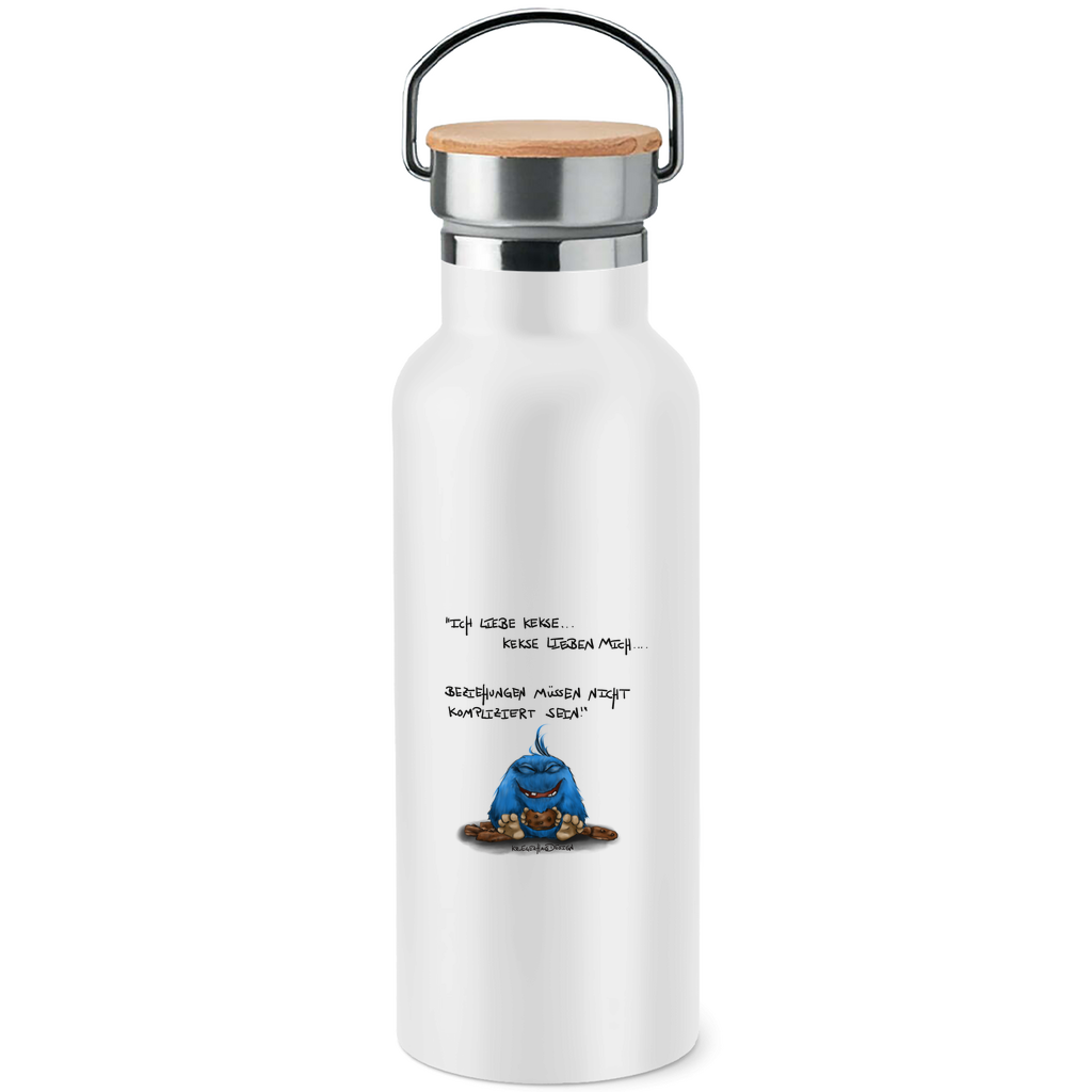 Edelstahl-Trinkflasche mit Bambusdeckel Ich liebe Kekse... Kekse lieben mich... Beziehungen müssen..