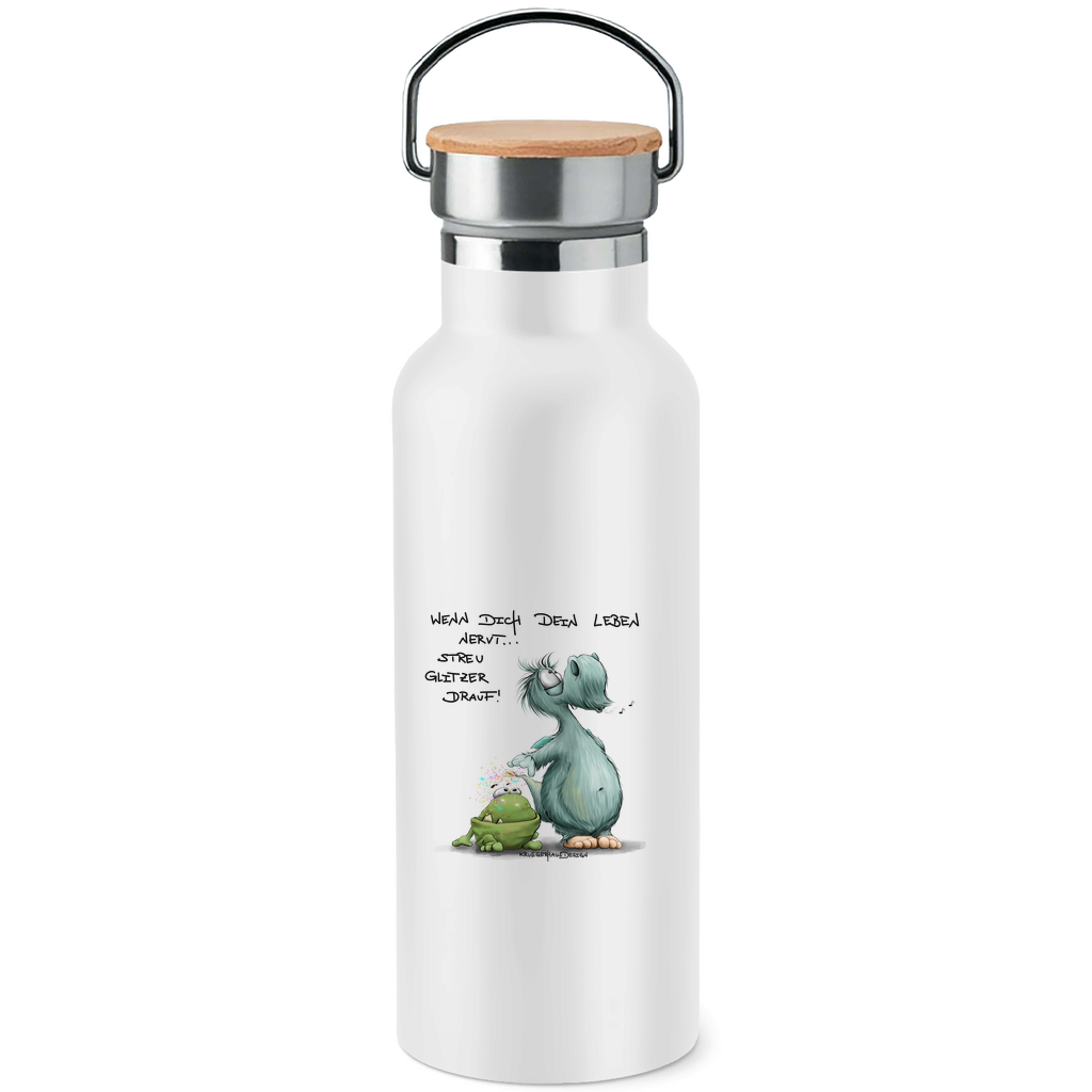Edelstahl-Trinkflasche mit Bambusdeckel Wenn dich dein Leben nervt... Streu Glitzer drauf!