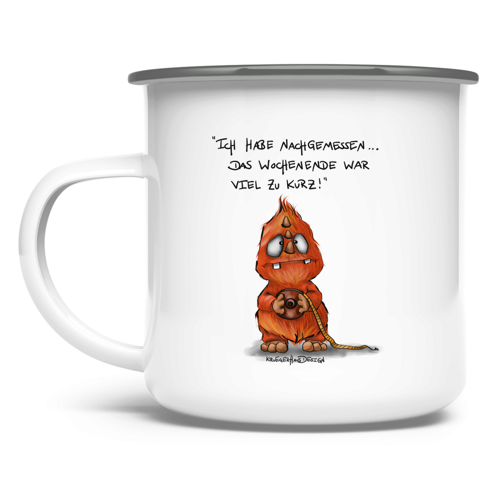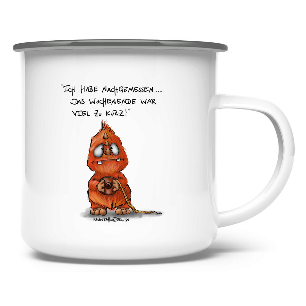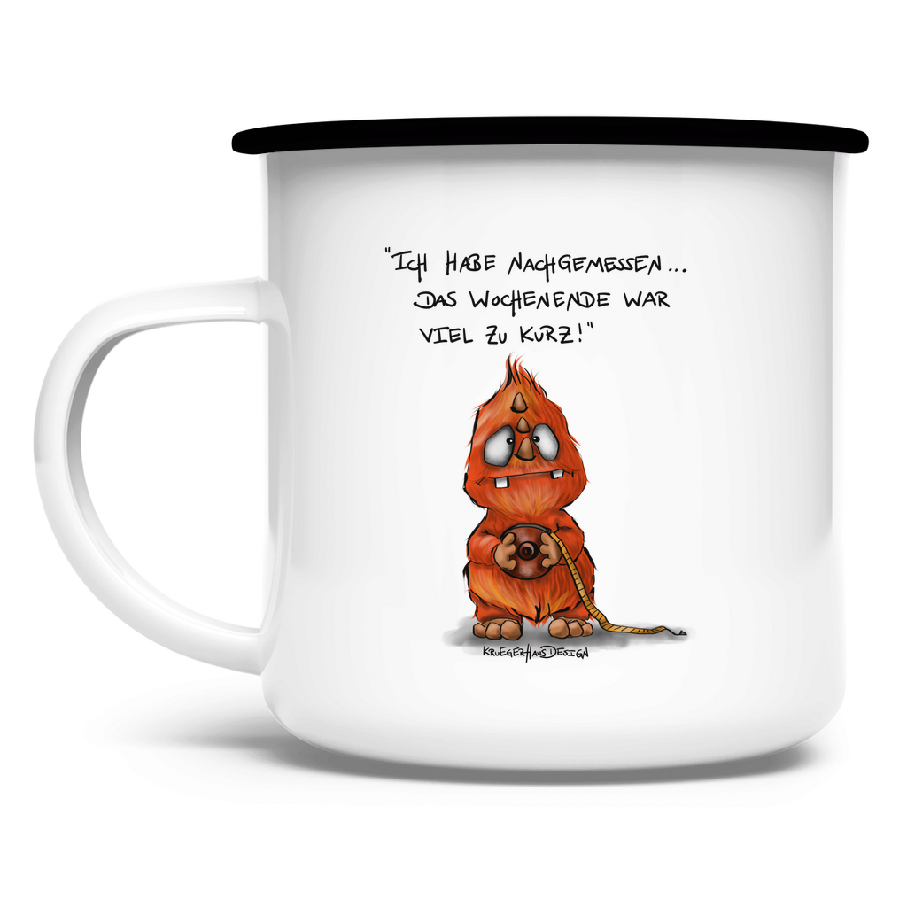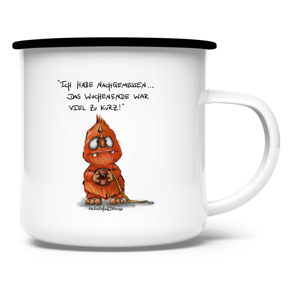 Emaille Tasse Ich habe nachgemessen. Das Wochenende war viel zu kurz!