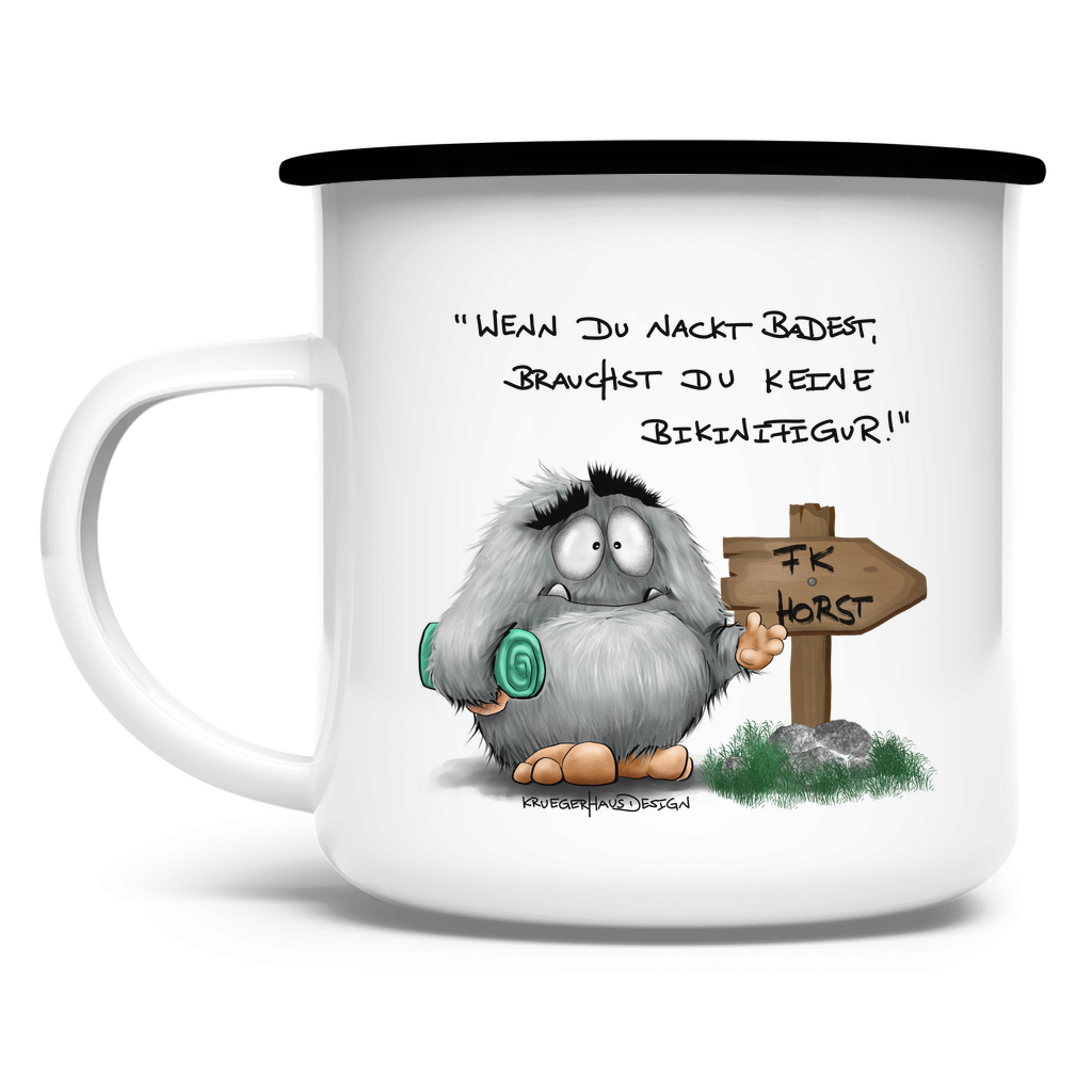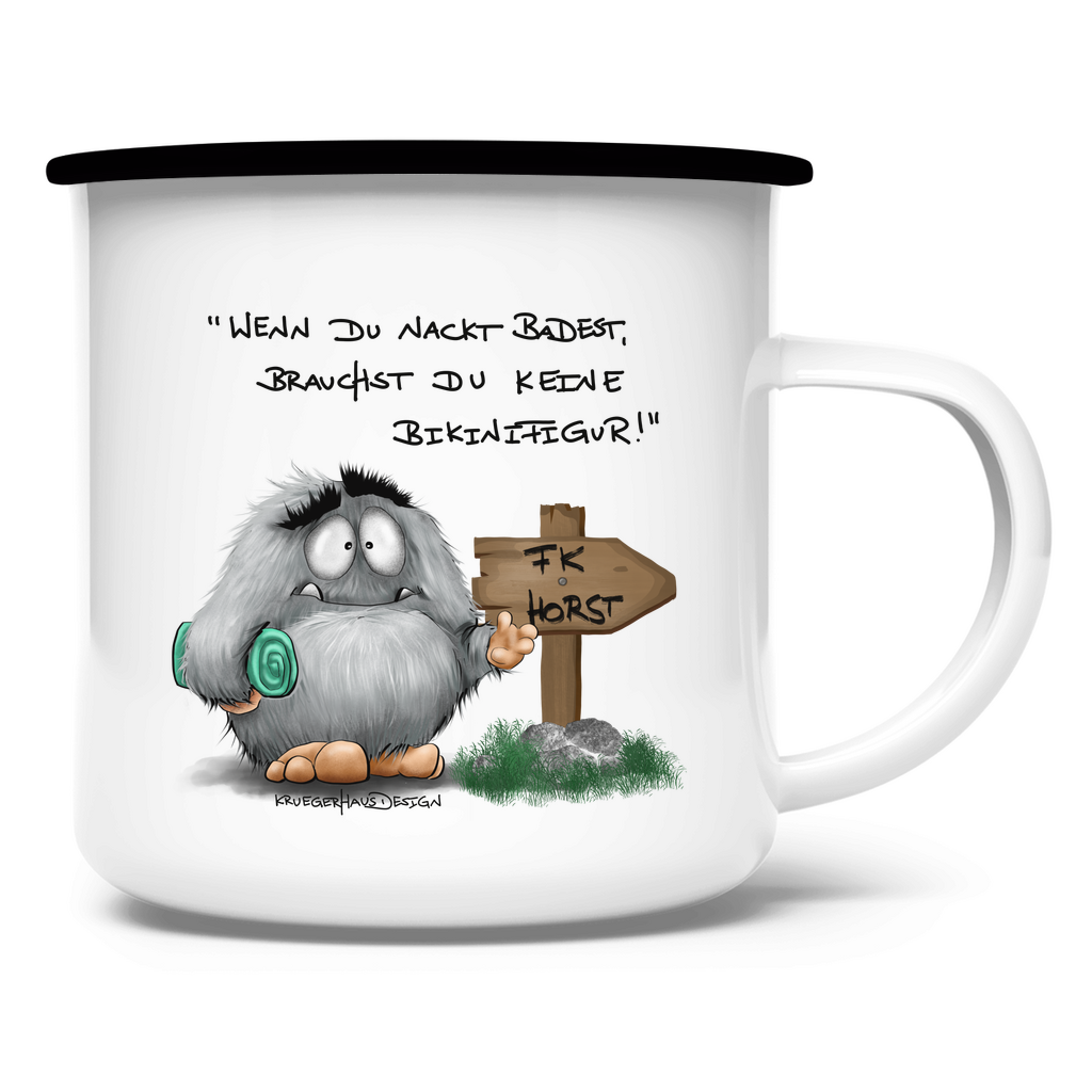Emaille Tasse Wenn du nackt badest, brauchst du keine Bikinifigur!