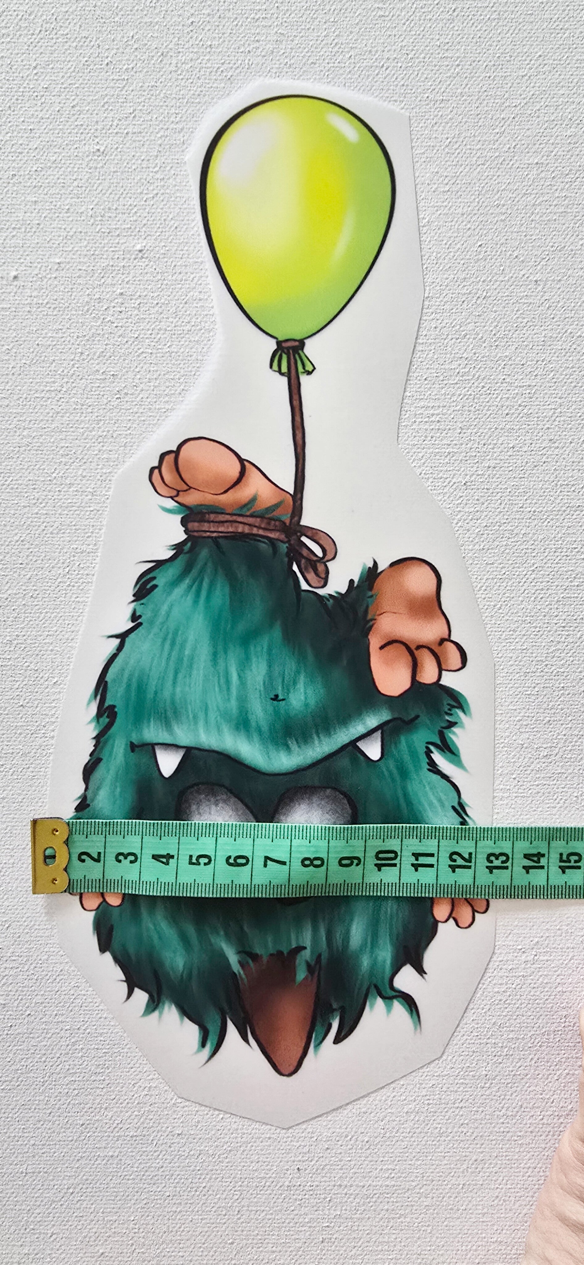 Hier bekommst du das XL Ballon Einzigartig Monster als Bügelbild. Größe beträgt 13cm breit x 27cm hoch.
