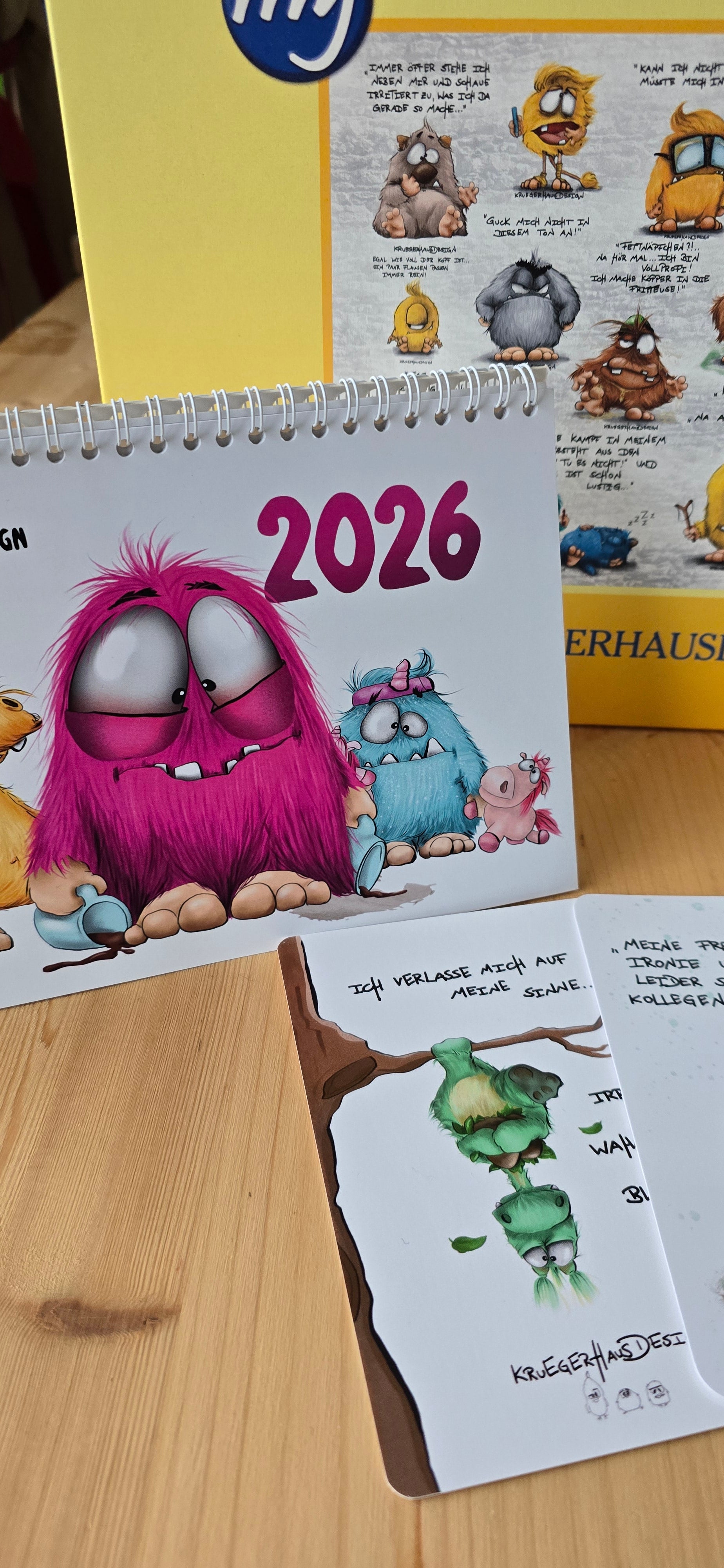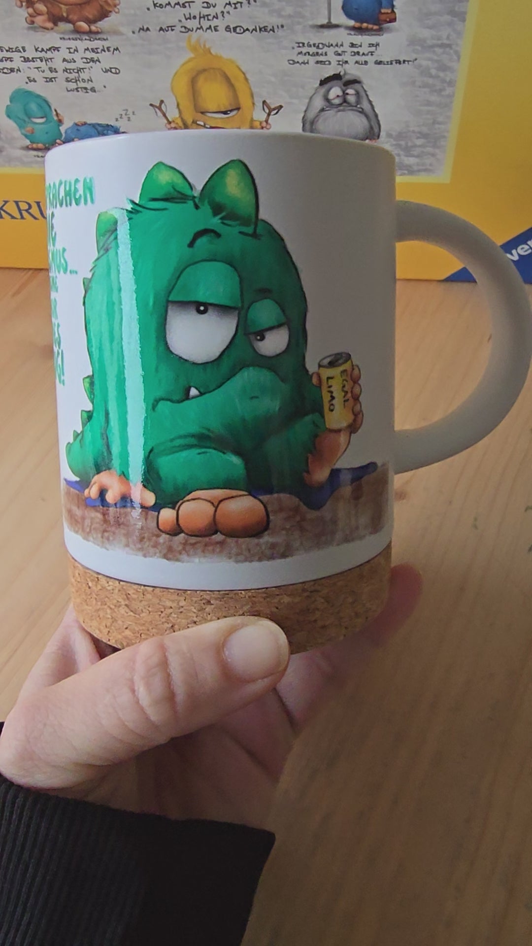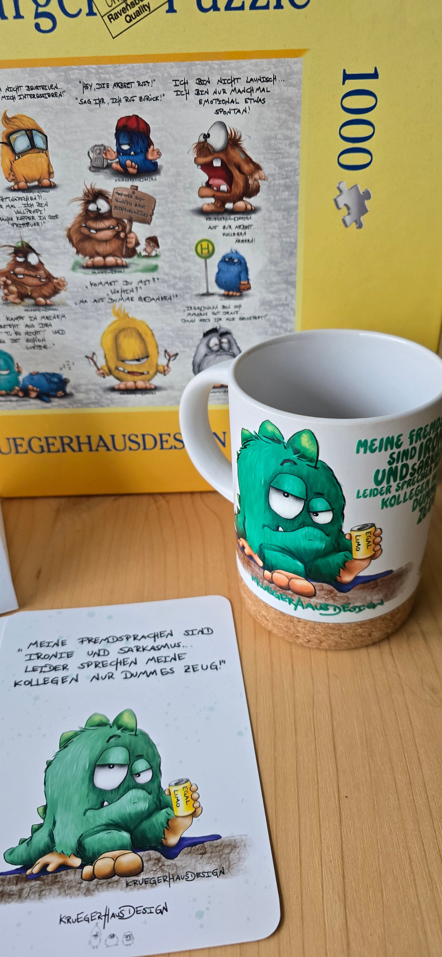 Geschenk Set aus einem Keramik Bambus Tasse Lee Monster, 1000 Puzzle, Kalender und Postkarten, nur 1x vorhanden