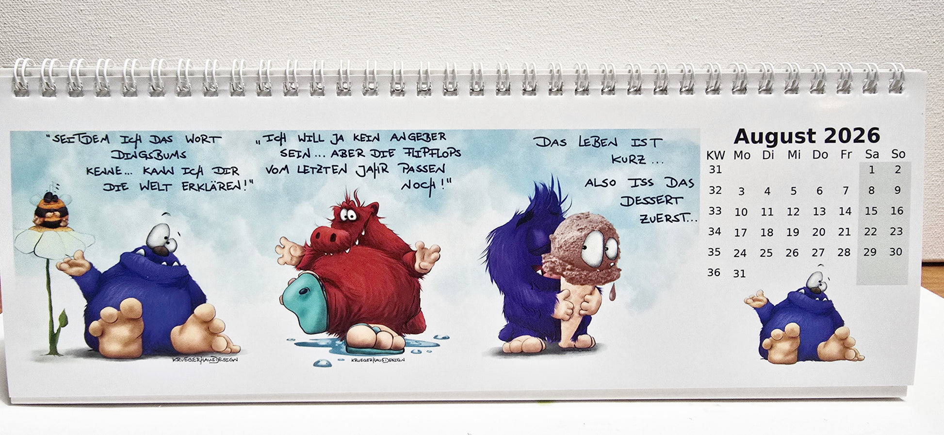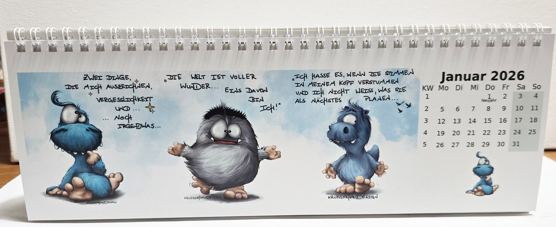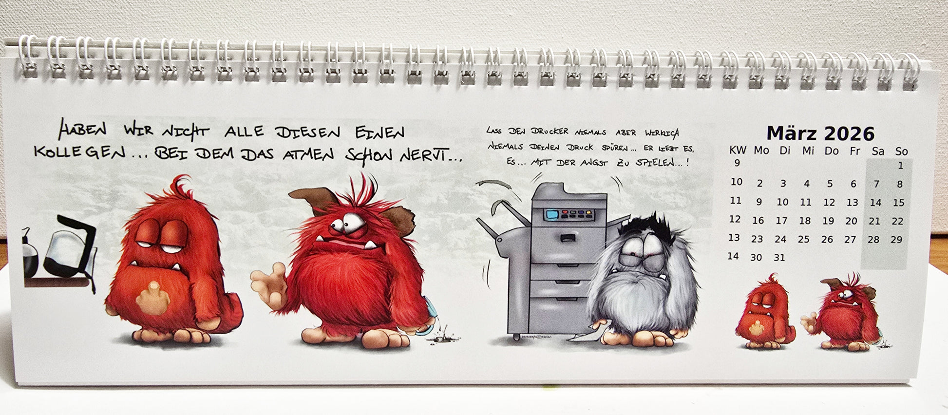 Der klassische Tischkalender, in breit. Der neue 2026 Kalender mit einer Auswahl von Monstern, die deinen Alltag belustigen.