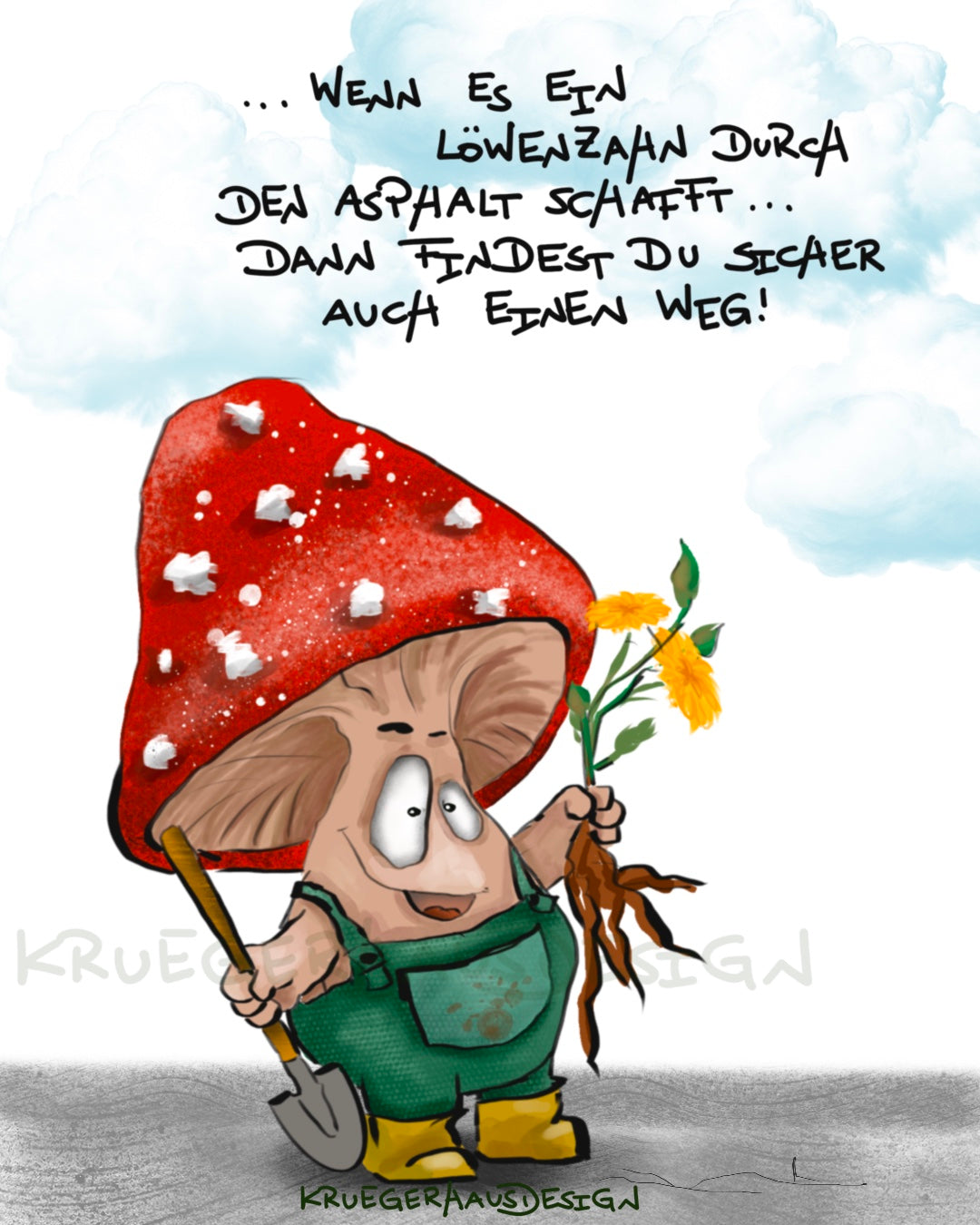 Poster von Kruegerhausdesign mit Monster und Spruch, Wenn es ein Löwenzahn durch den Adphalt... Design 1