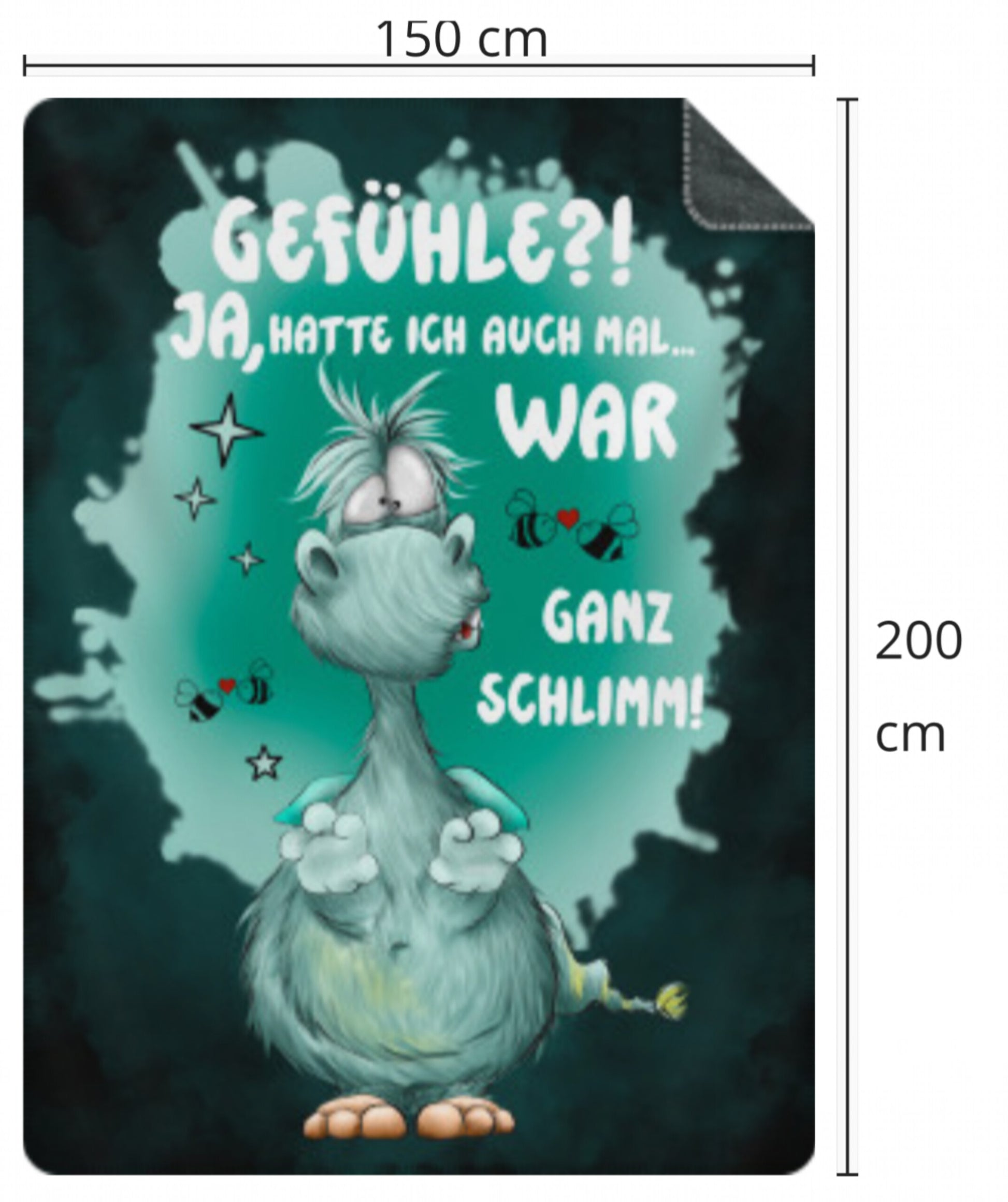Premium Kuscheldecke, superweich, 150 x 200cm, Kruegerhausdesign Monster, Gefühle?! Ja, hatte ich auch mal...