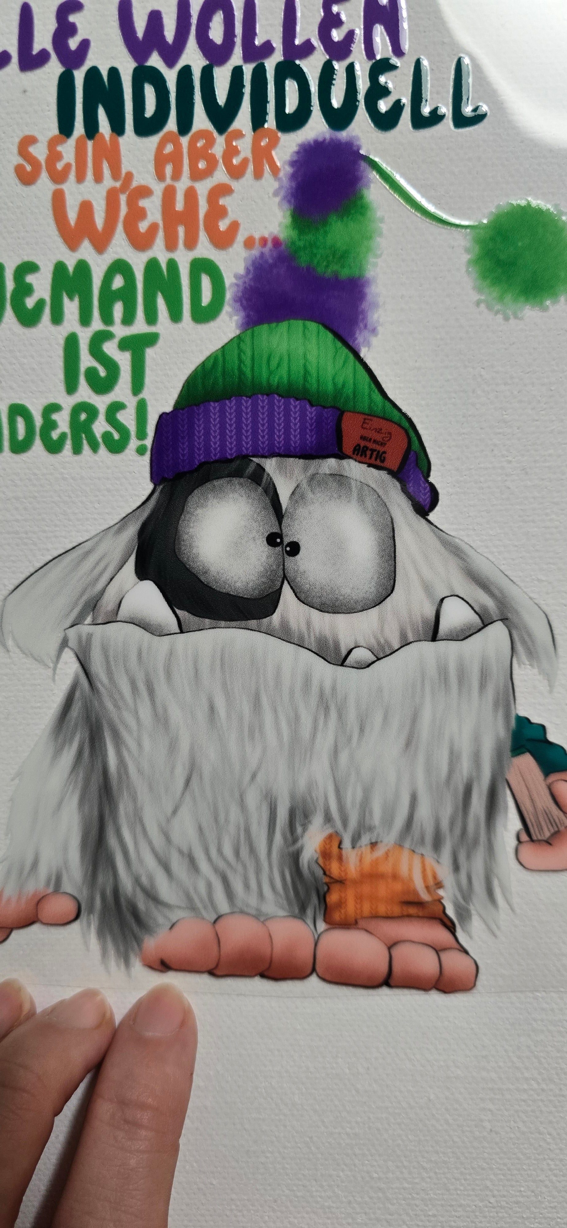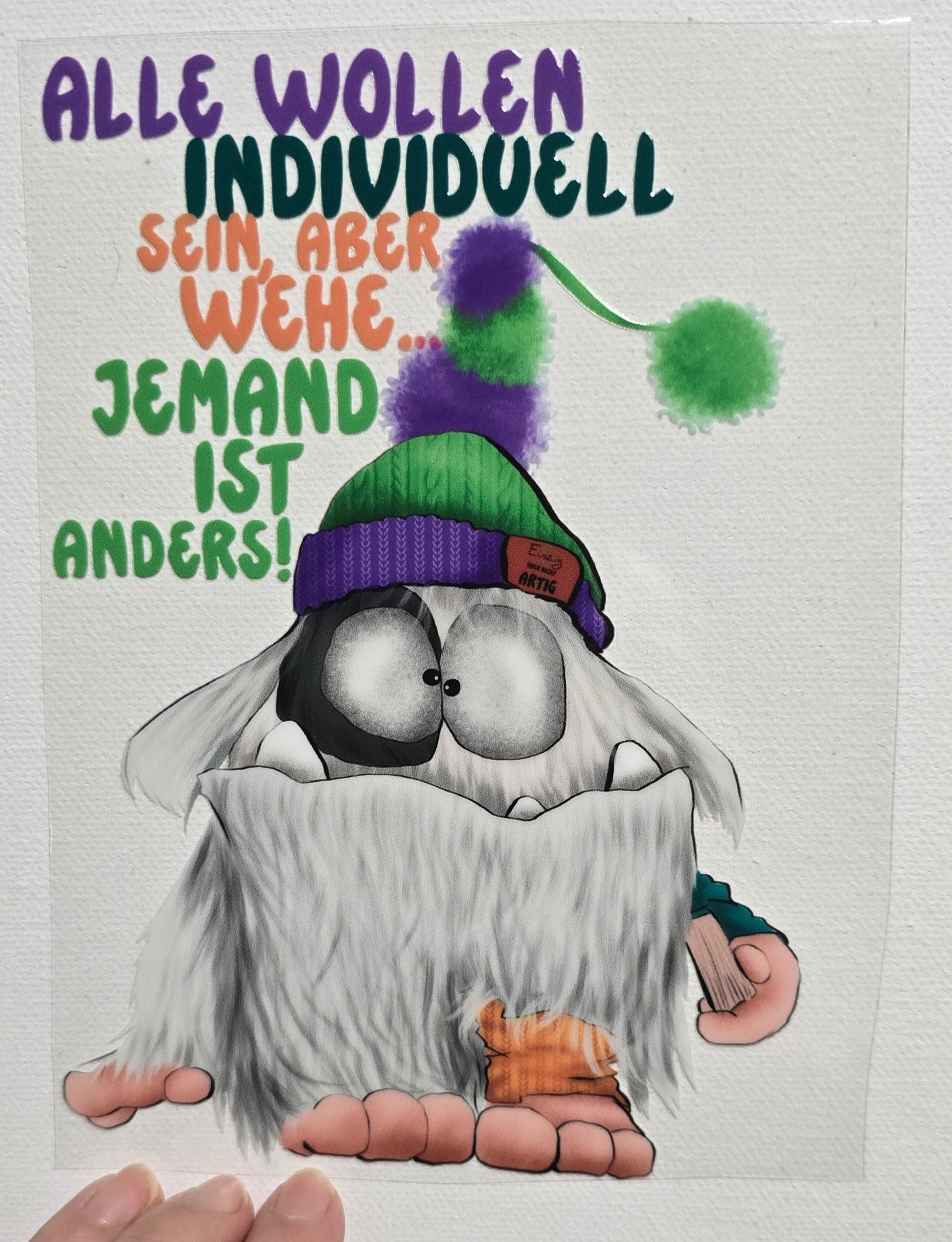 Rub on, UV Folienaufkleber, Monster, Alle wollen individuell sein, aber wehe... jemand ist anders!