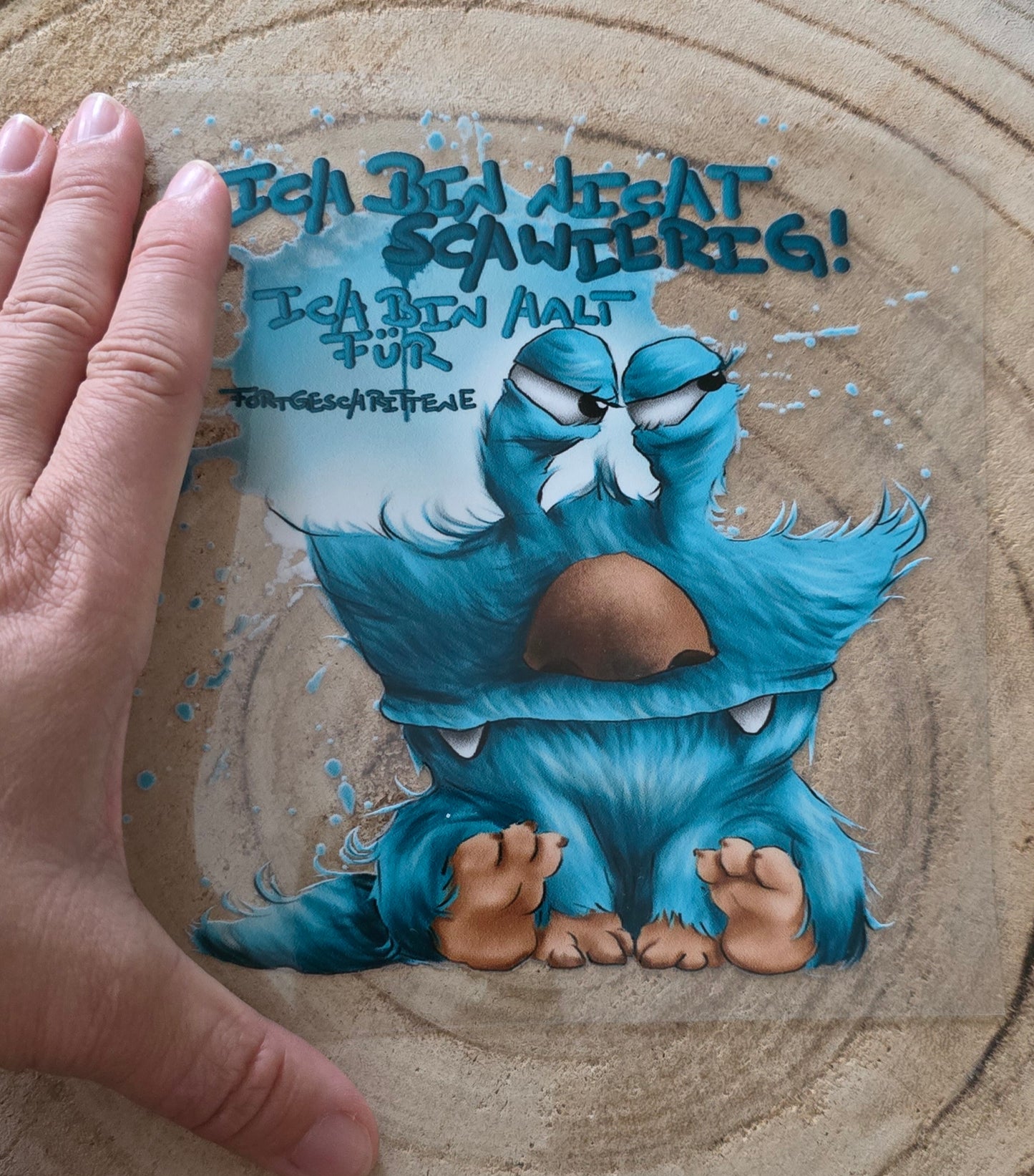 Rub on, UV Folienaufkleber, Monster, Ich bin nicht schwierig! Ich bin halt für Fortgeschrittene!