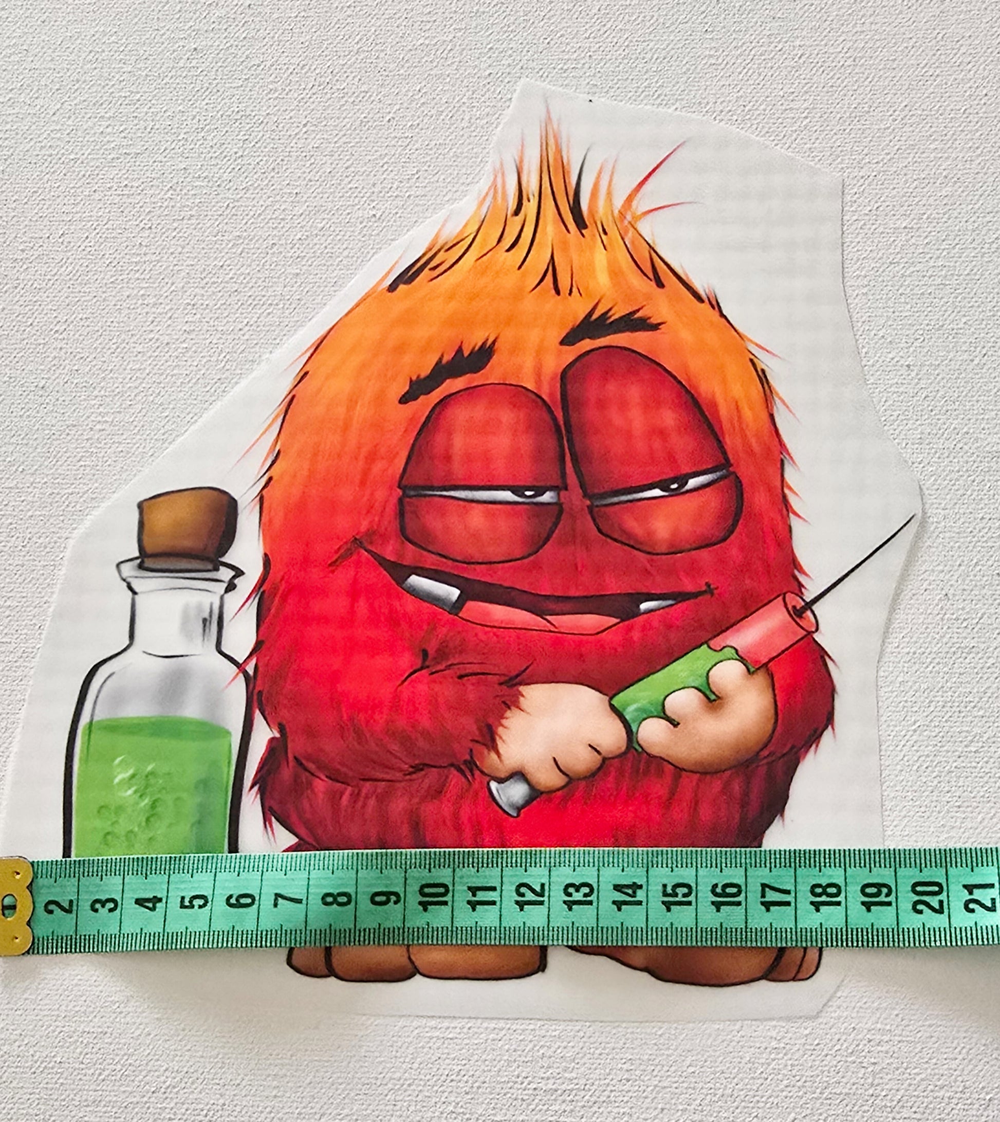 Hier bekommst du das Giftspritze Monster als Bügelbild. Größe beträgt 17cm breit x 17cm hoch.