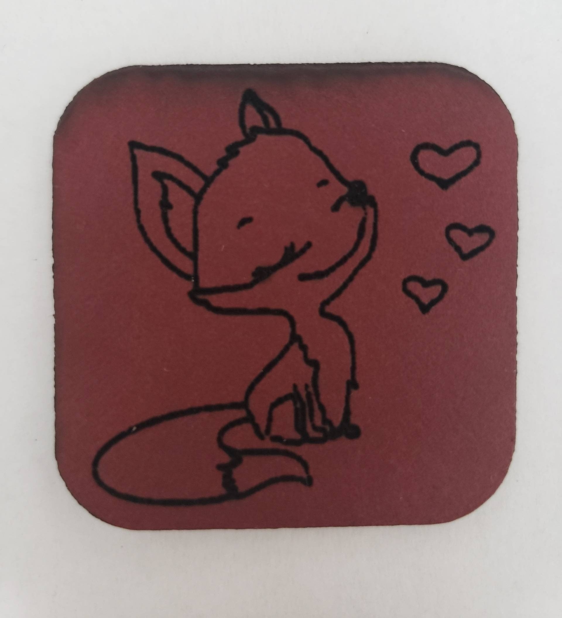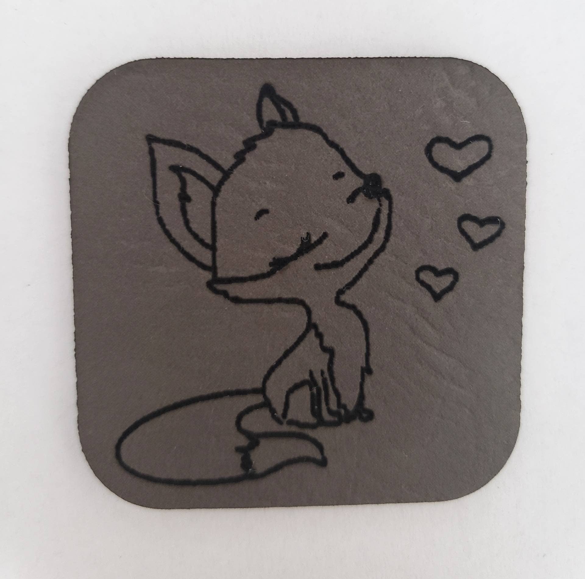 Hier bekommst du Ein Kunstleder Aufnäher mit einem selbstgezeichneten Happy Fuchs Design.