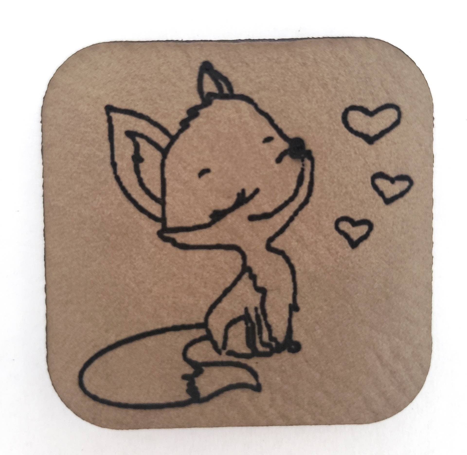 Kunstleder Label, Patch, Etikett, Aufnäher, Happy Fuchs, rosa, mint, braun, blau, grau, beigebraun, bambus, schwarz