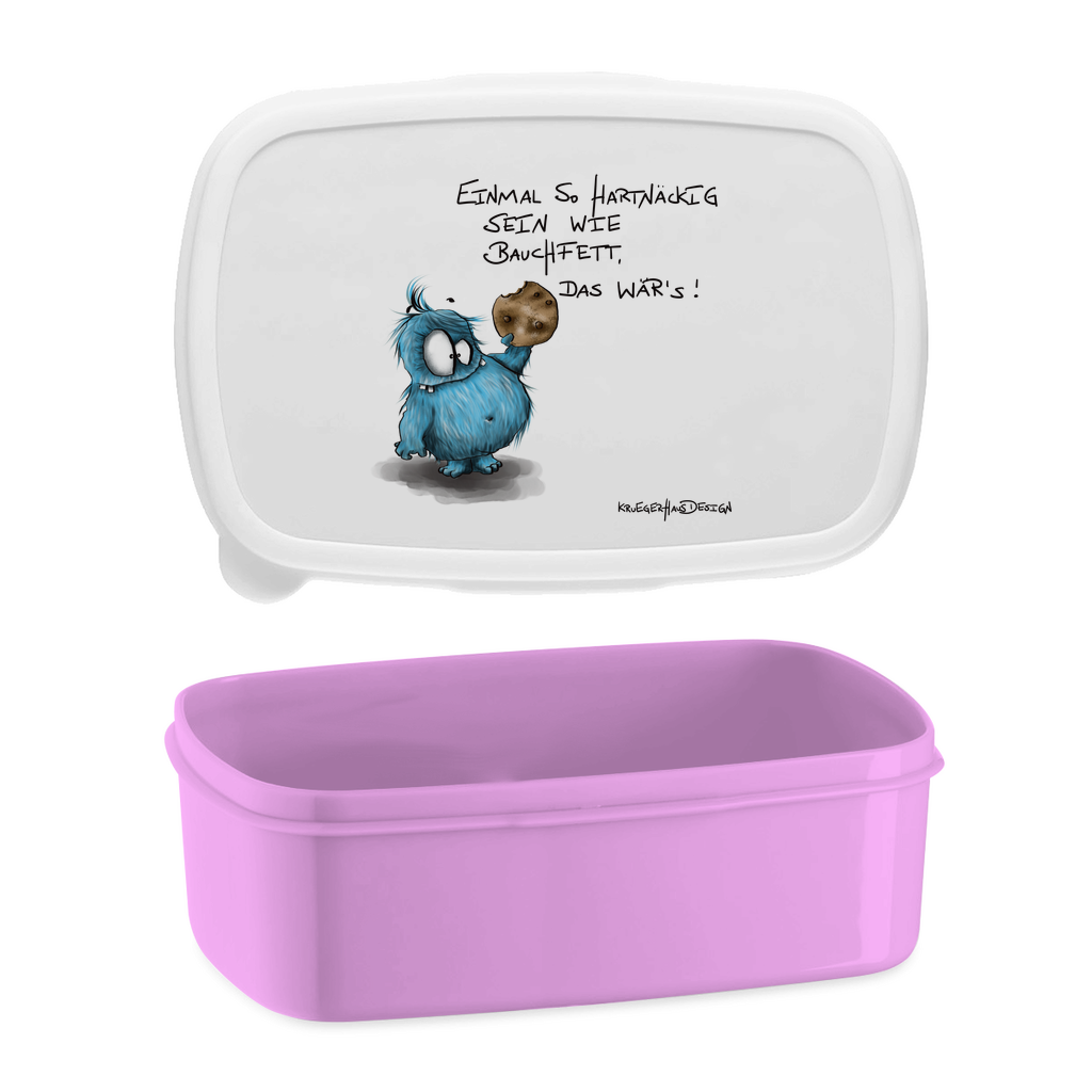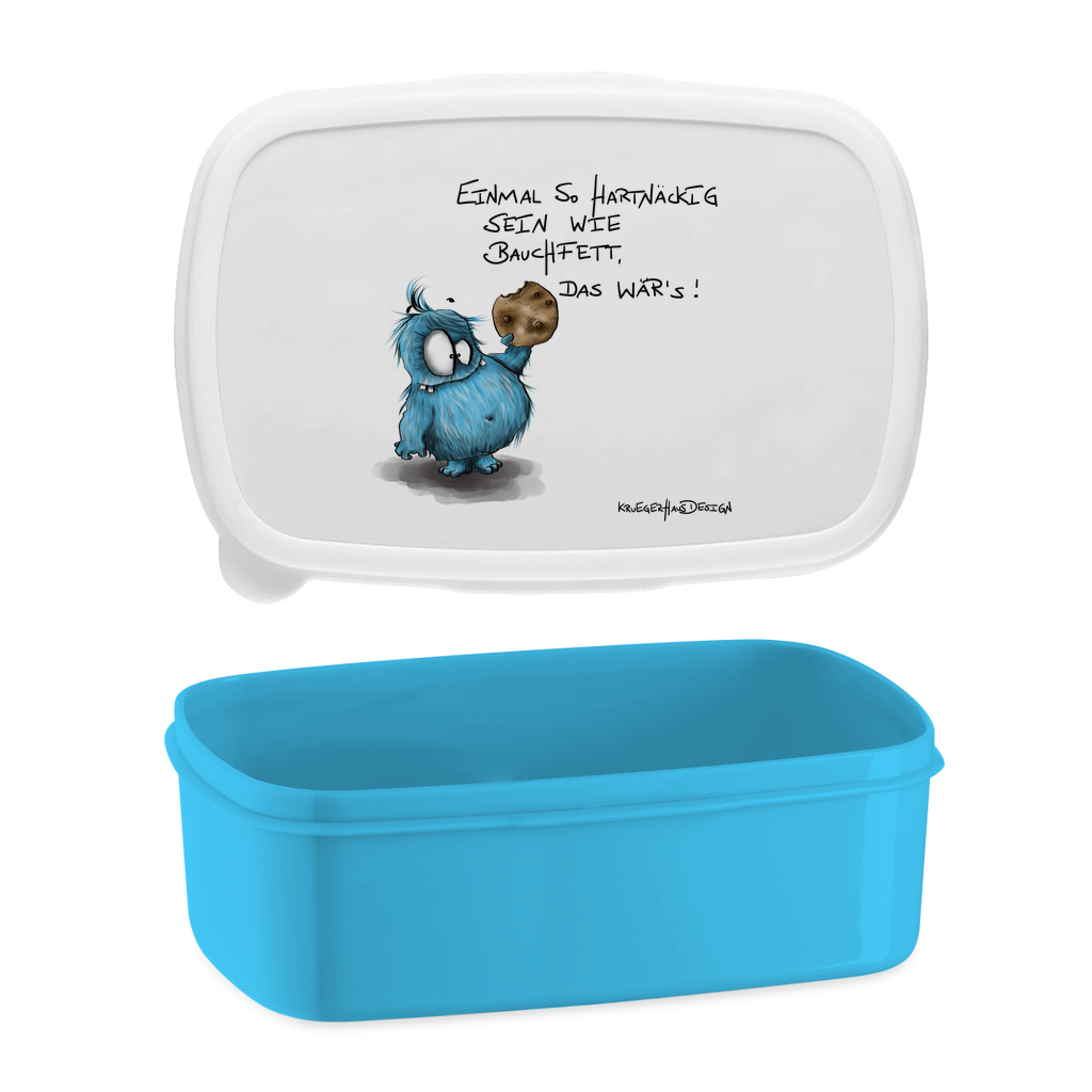 Entdecke unsere praktische Lunchbox! Erhältlich in den Farben Weiß, Blau, Pink, jeweils mit einem fest sitzenden, abnehmbaren weißen Deckel.