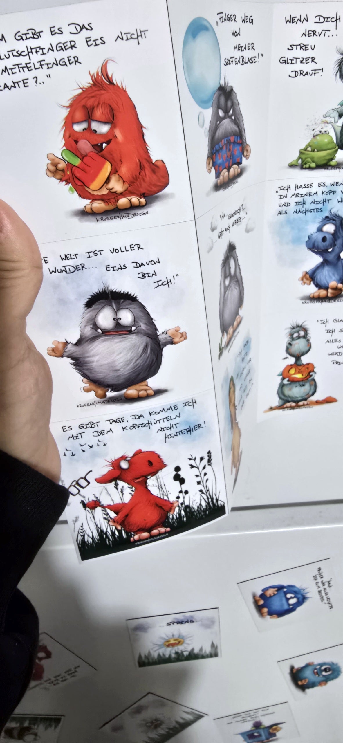 Es sind unterschiedliche Motive mit Sprüchen von Kruegerhausdesign.