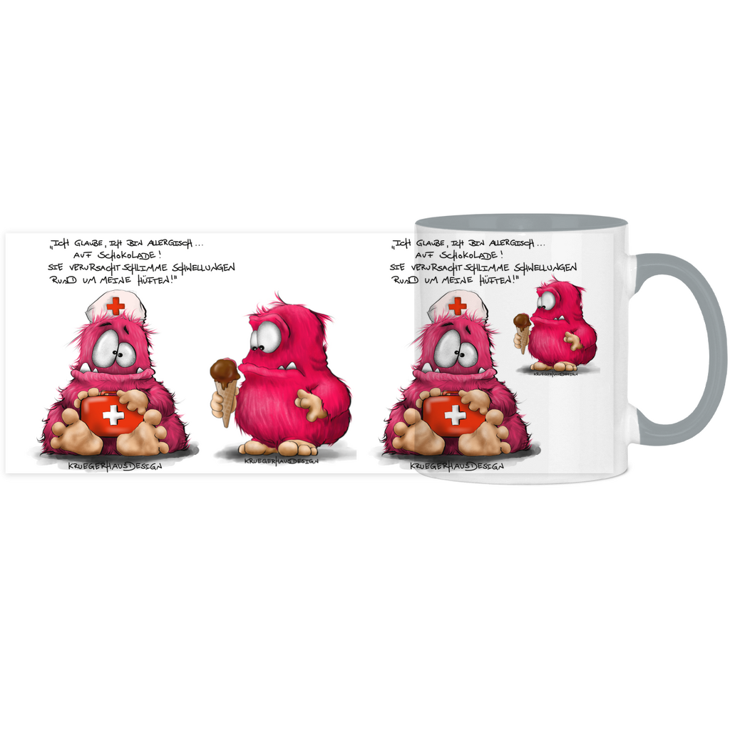 Tasse, Kaffeetasse, Teetasse, zweifarbig, Kruegerhausdesign Monster mit Spruch, Ich glaube, ich bin allergisch...