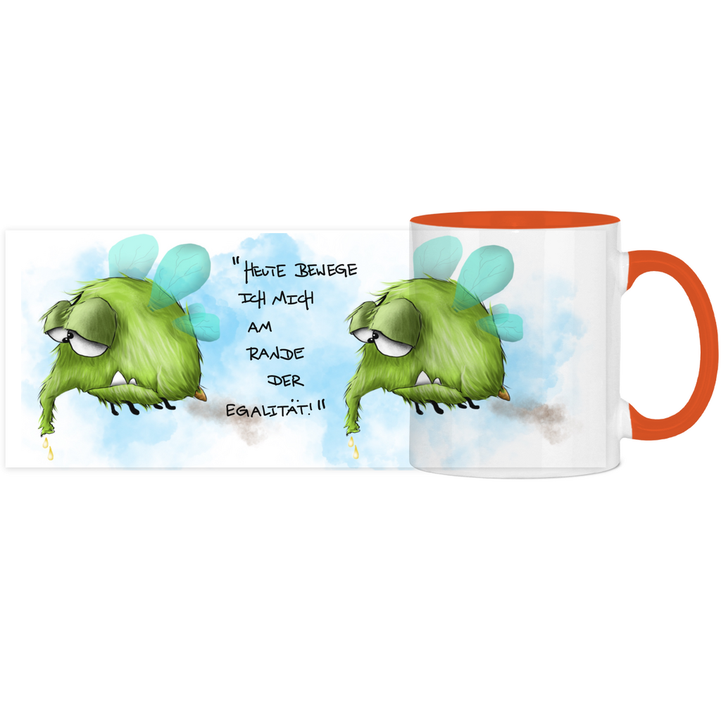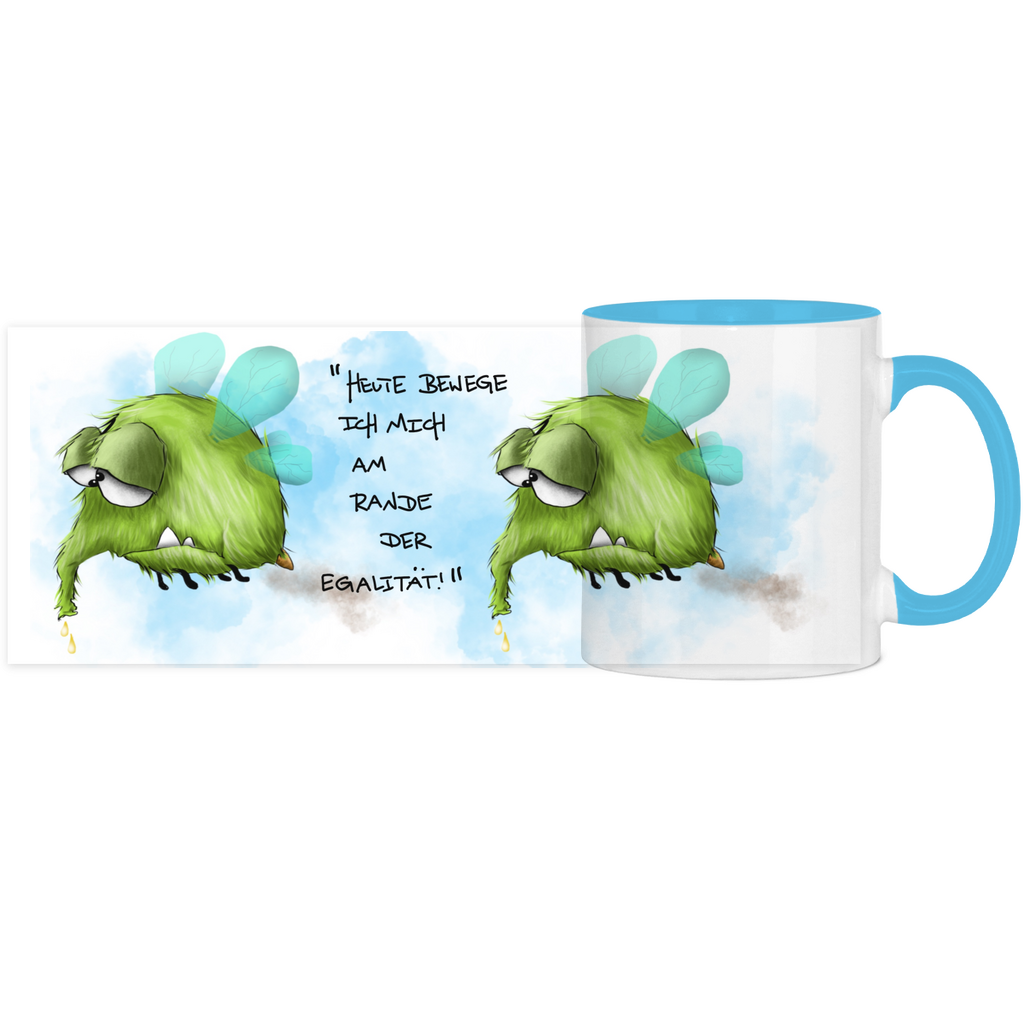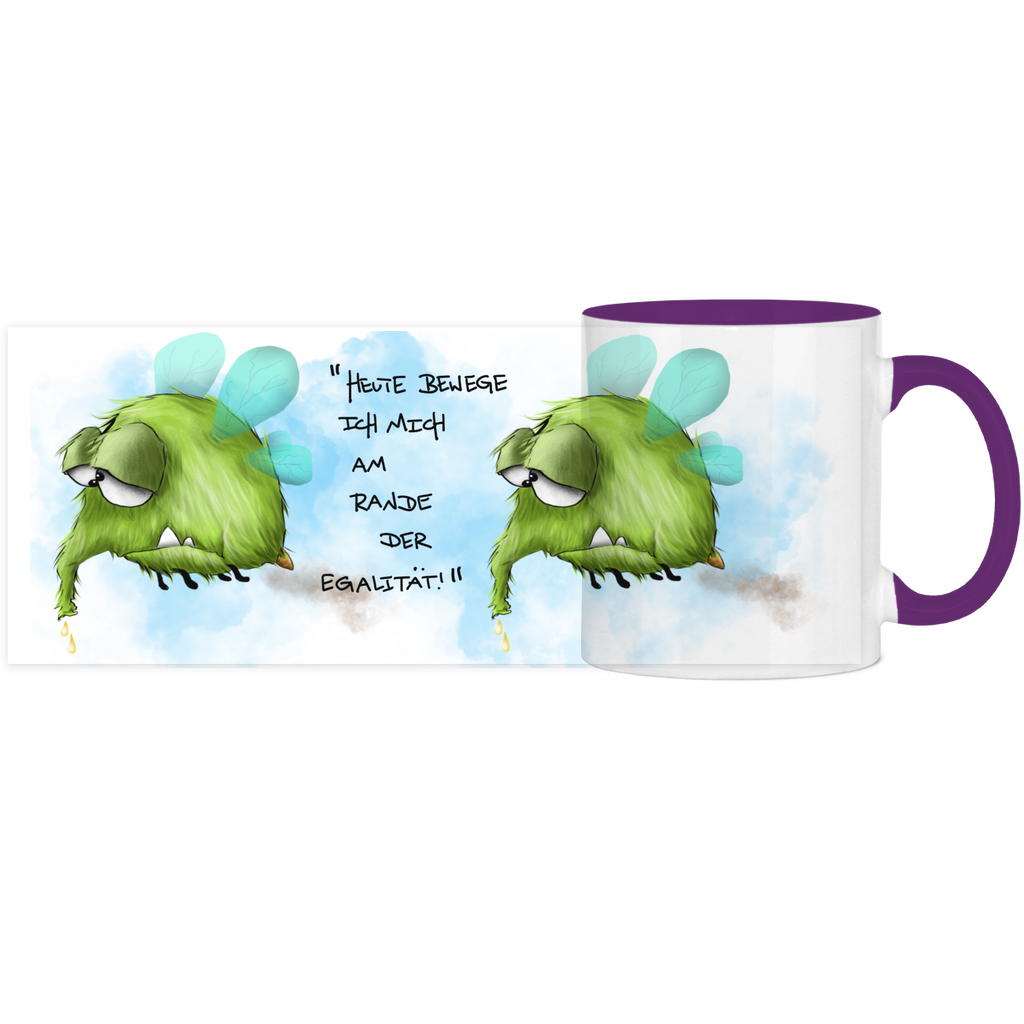 Tasse, Kaffeetasse, Teetasse, zweifarbig, Kruegerhausdesign Monster mit Spruch, 2. Variante, Heute bewege ich mich...