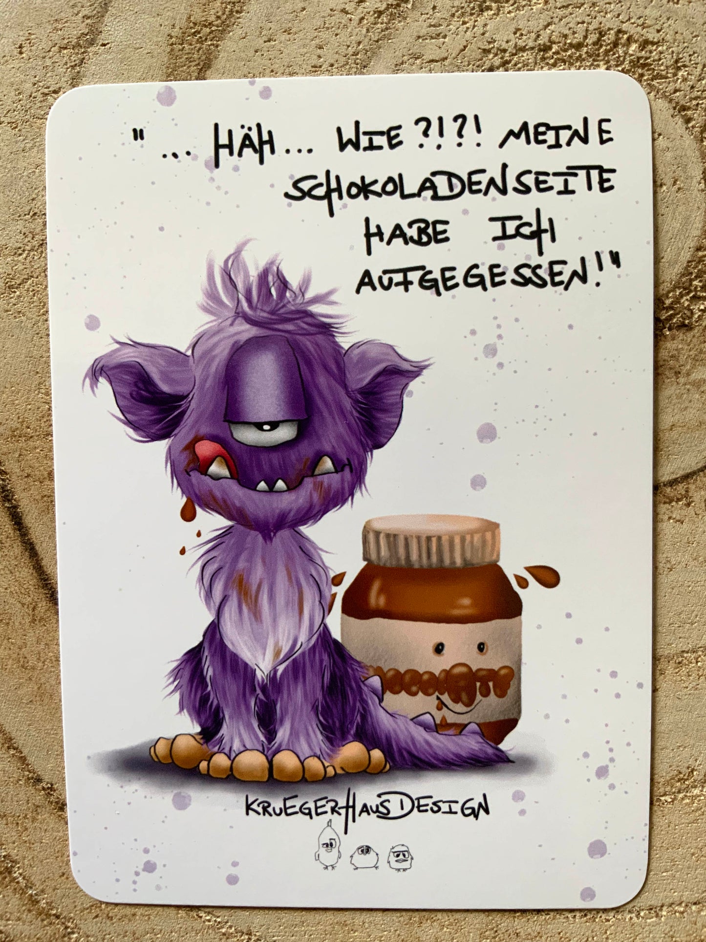 Postkarte Monster Kruegerhausdesign "-Häh... Wie?!? Meine Schokoladenseite..."