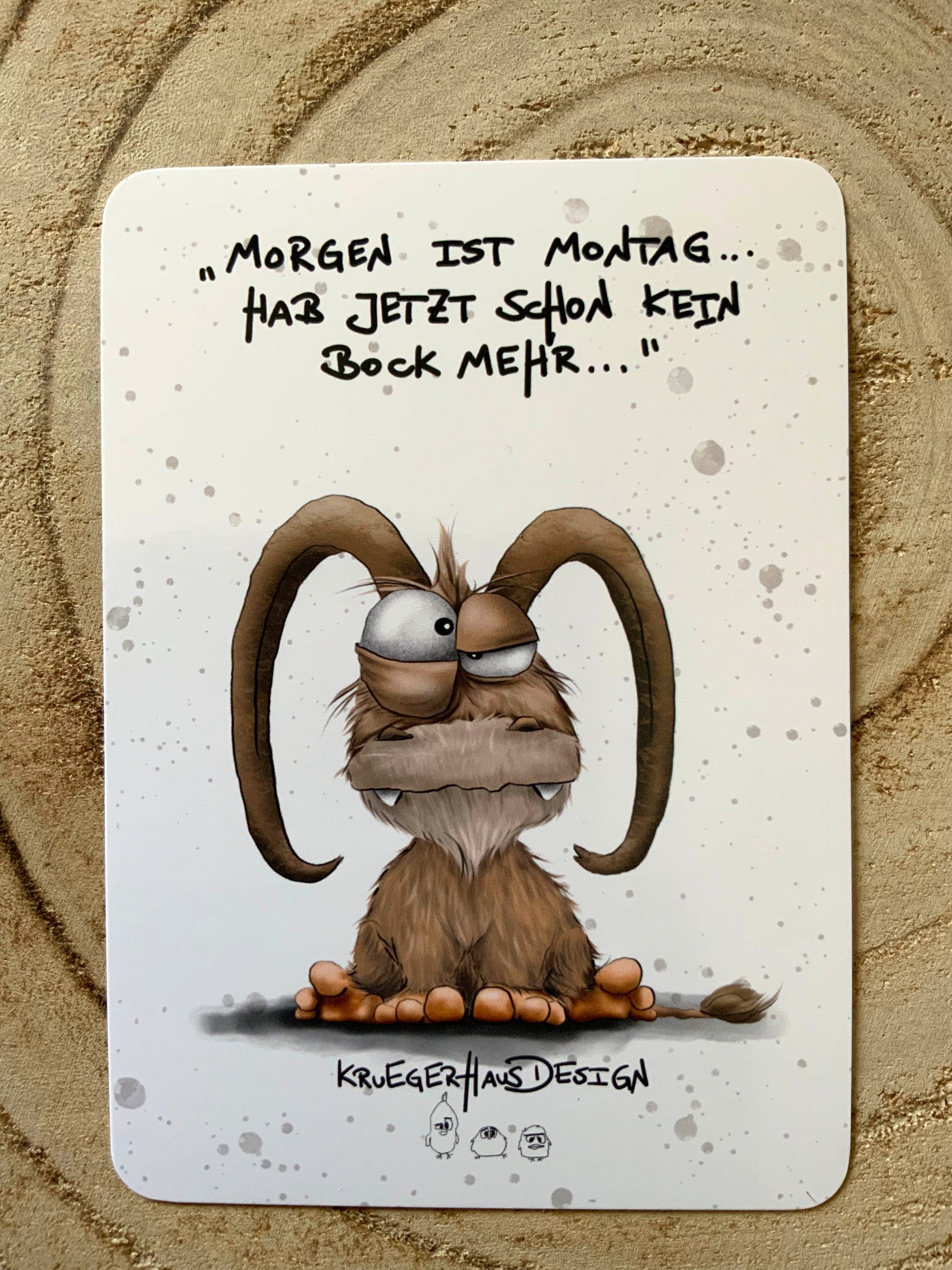 Postkarte Monster Kruegerhausdesign "Morgen ist Montag... Hab jetzt schon"