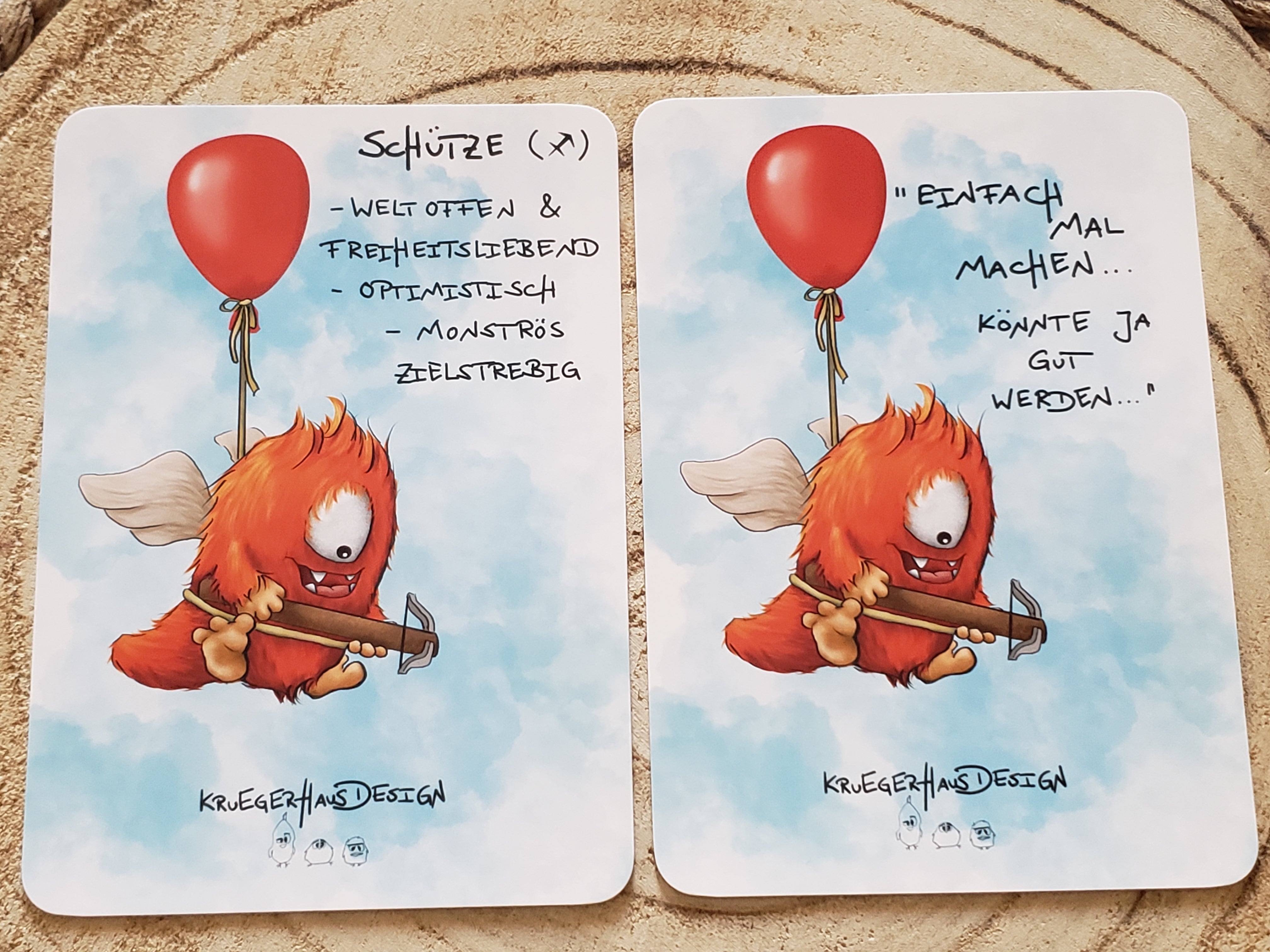 Postkarte Monster Kruegerhausdesign Schütze Thema 2 Stück