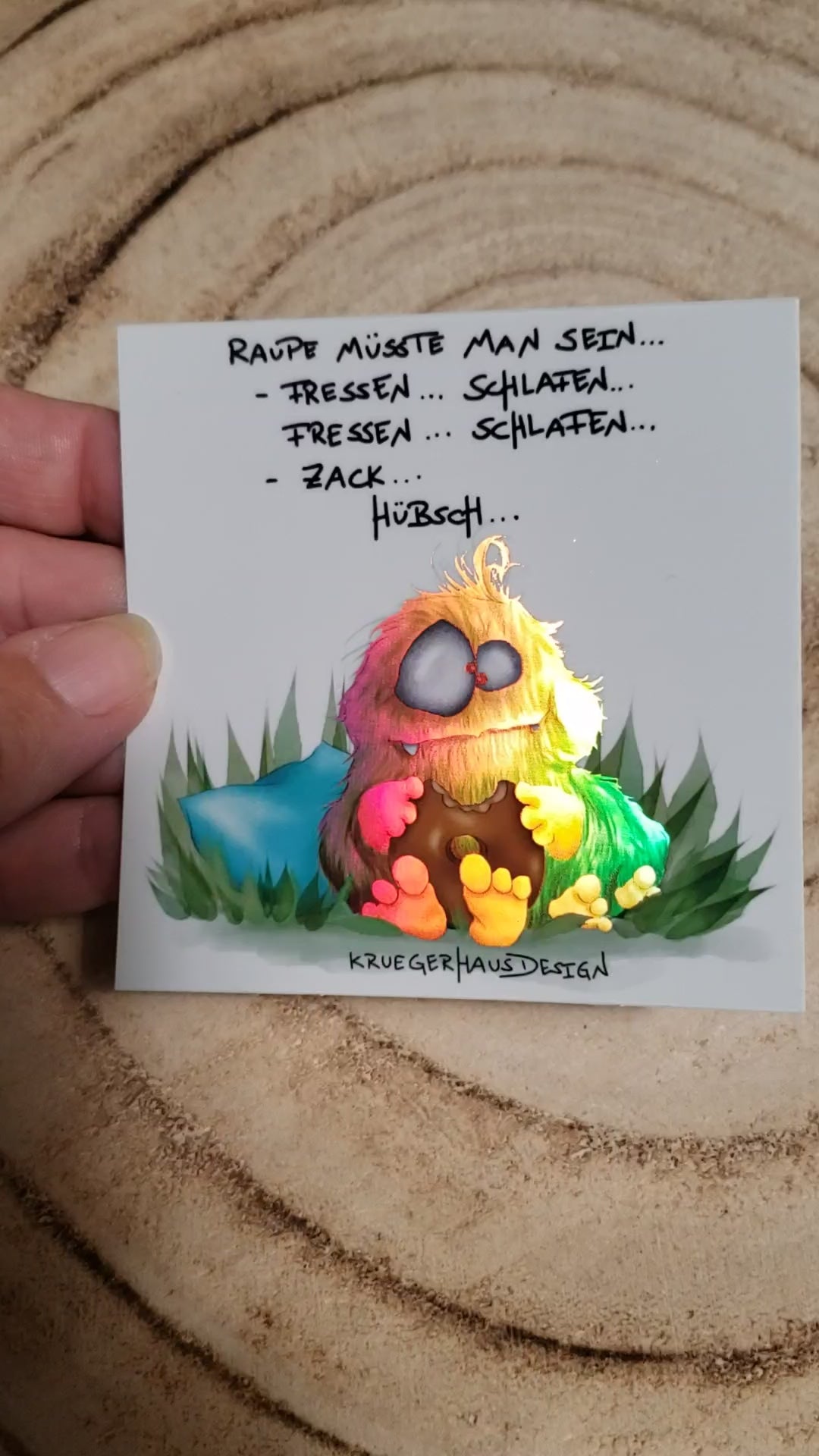 Sticker Hologram Kruegerhausdesign mit Monster und Spruch "Raupe müsste man sein..."