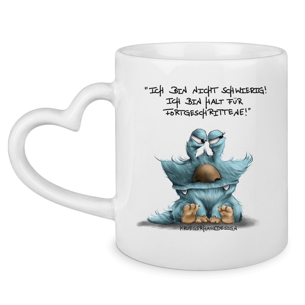 Tasse mit Herzhenkel Ich bin nicht schwierig! Ich bin halt für Fortgeschrittene!