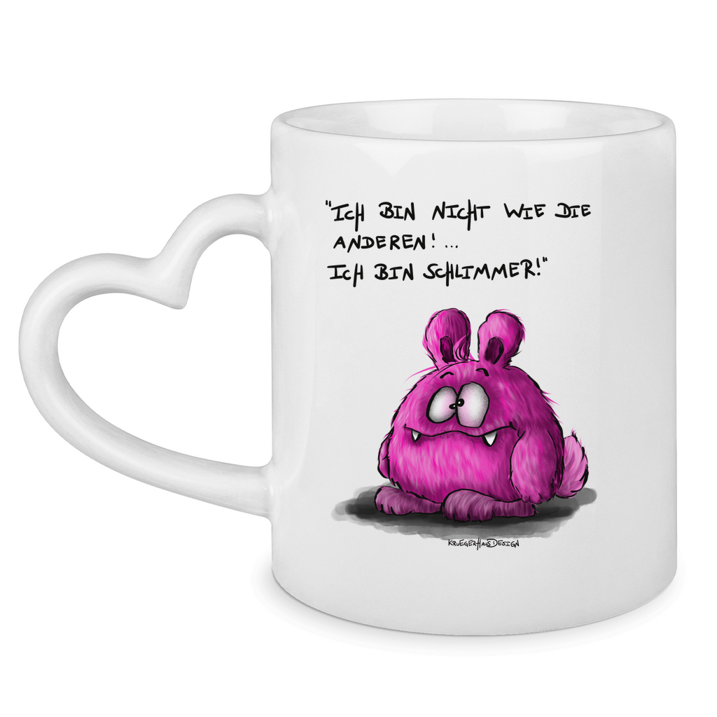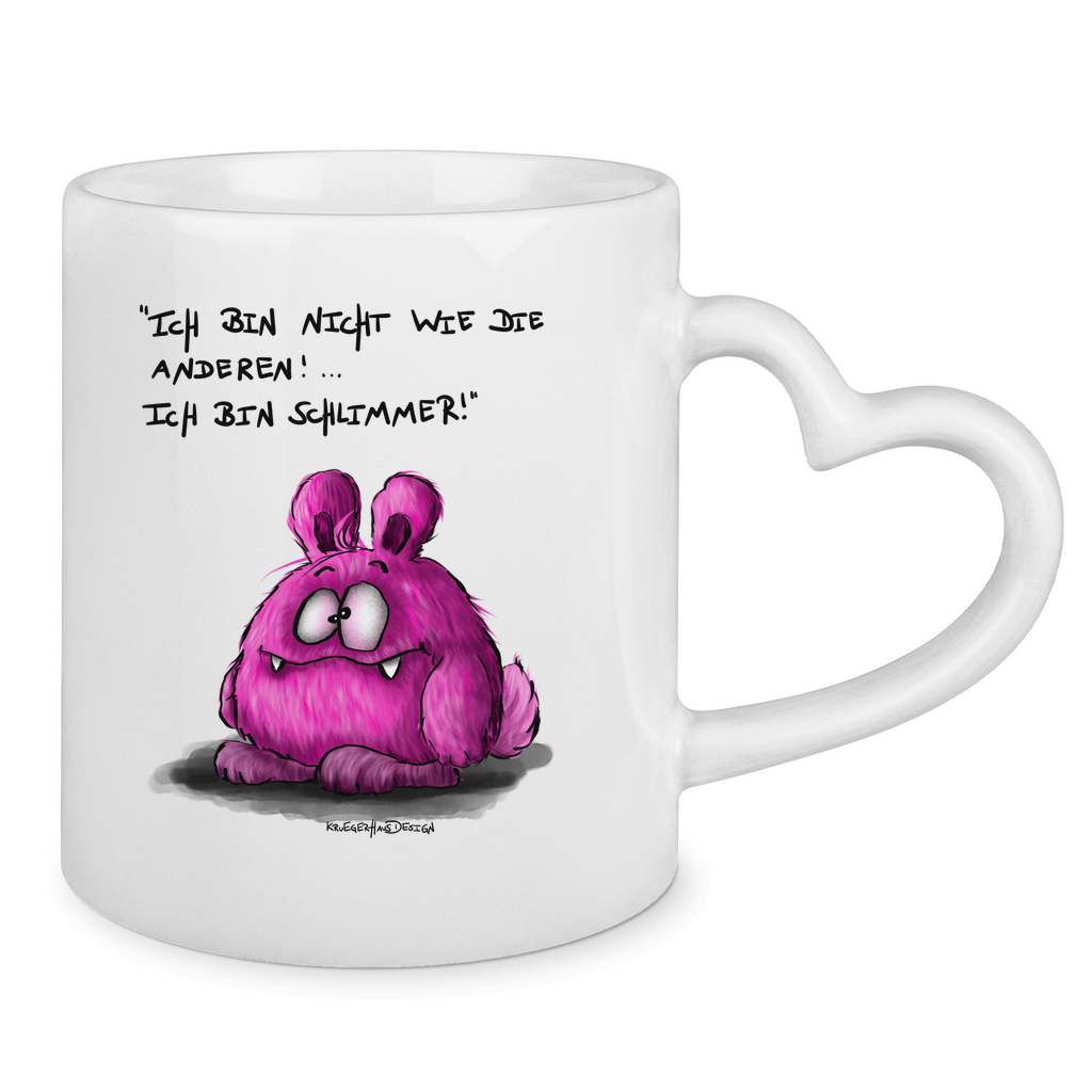 Tasse mit Herzhenkel Ich bin nicht wie die anderen! Ich bin schlimmer! pink