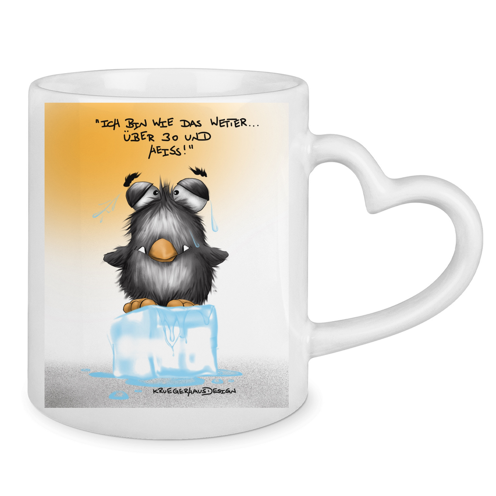 Tasse mit Herzhenkel Ich bin wie das Wetter… über 30 und heiss!