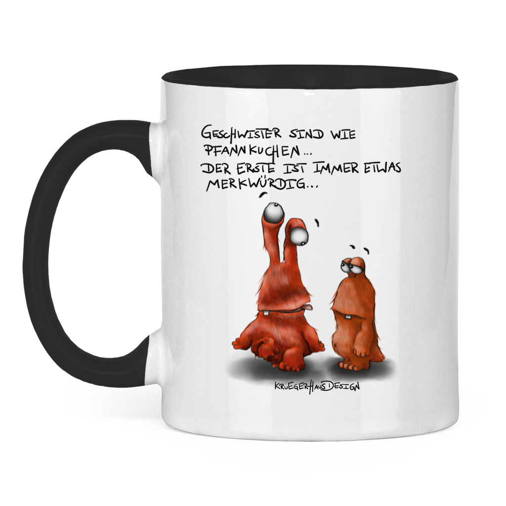 Tasse zweifarbig Geschwister sind wie Pfannkuchen... Der Erste ist ...