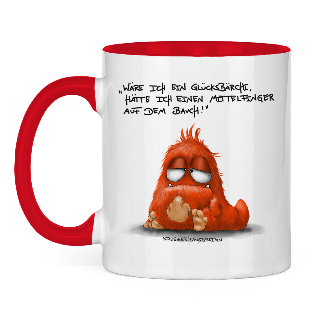 Tasse zweifarbig Wäre ich ein Glücksbärchi, hatt ich einen Mittelfinger...