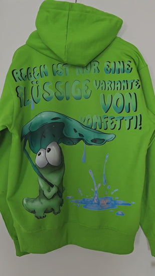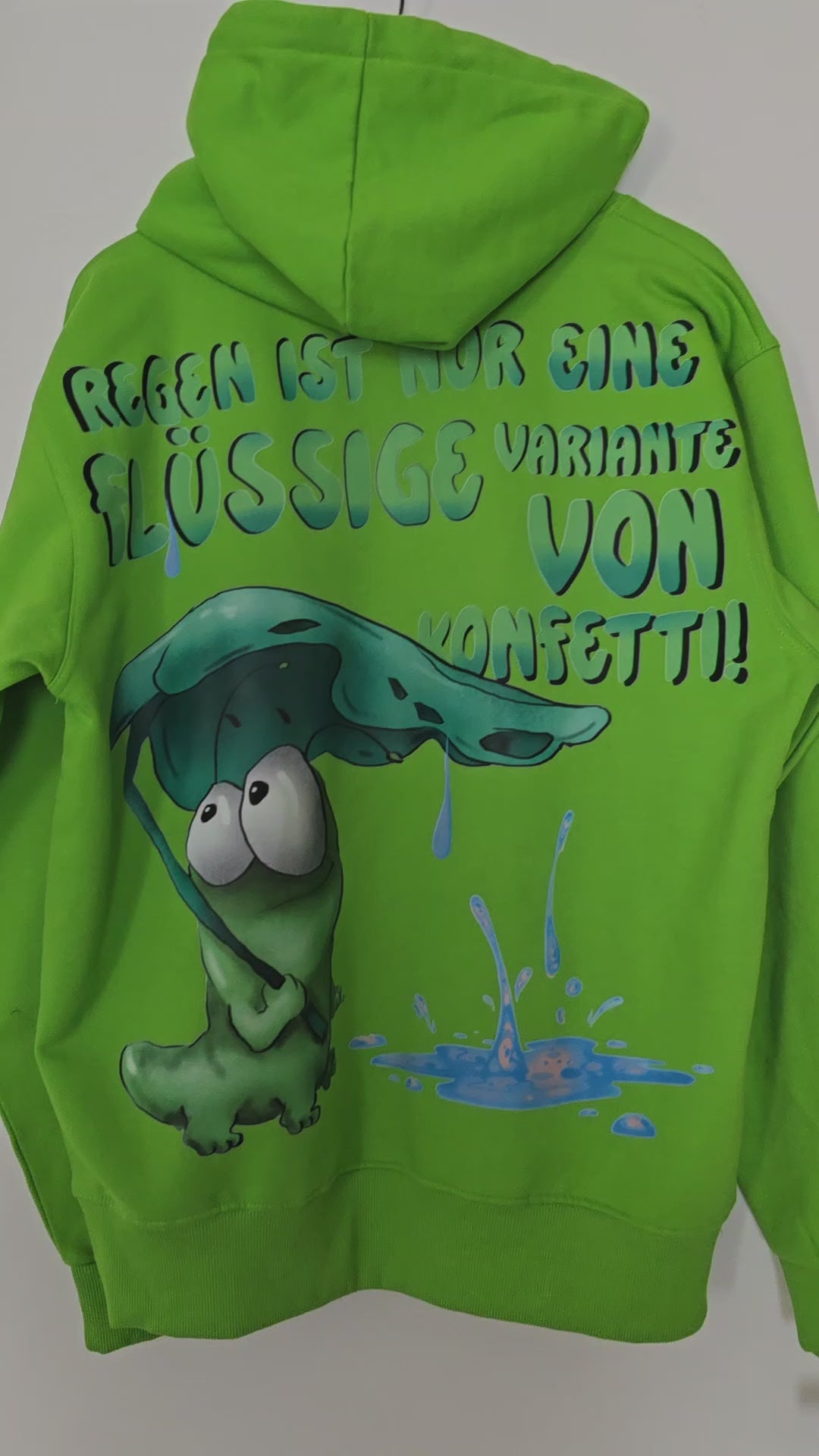Unisex Hoodie XXL Druck Kruegerhausdesign Monster, Gr. XL, lime grün, Regen ist auch nur eine flüssige Variante von Konfetti..